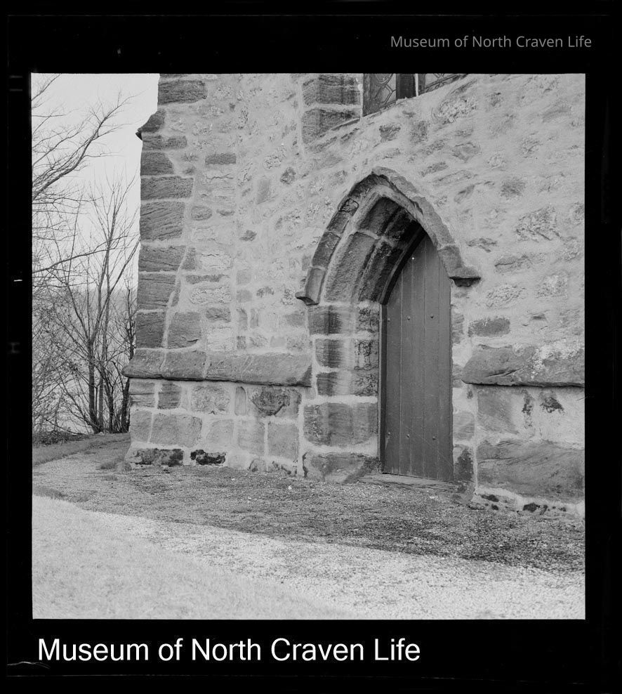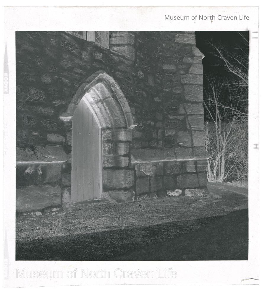 A 2 ¼" b/w acetate film negative. A view of the doorway of an unidentified churchCollection