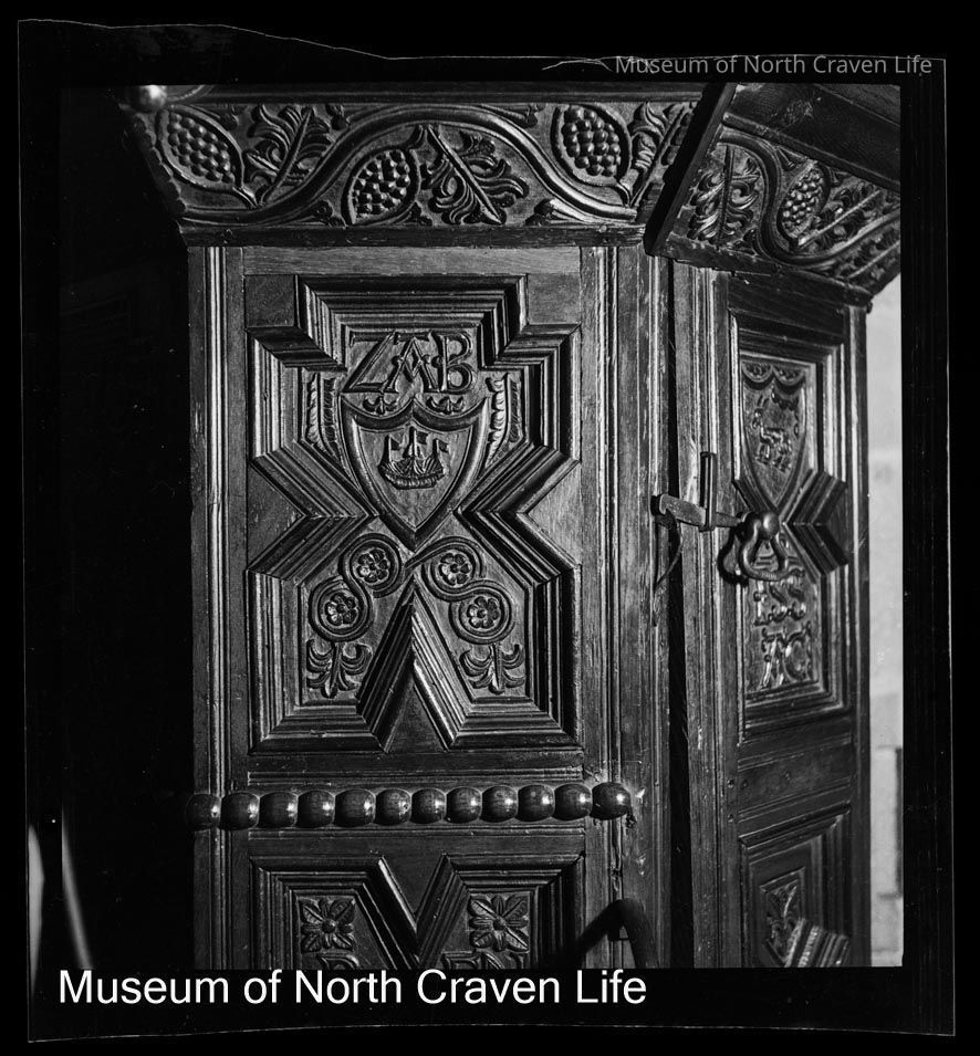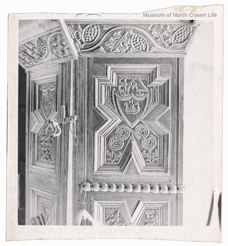 A 2 ¼" gelatin silver acetate film negative. A view of panels of the three decker 17C pulpit in the church of St Alkelda in Giggleswick (https://historicengland.org.uk/listing/the-list/list-entry/1157303?section=official-list-entry)Collection