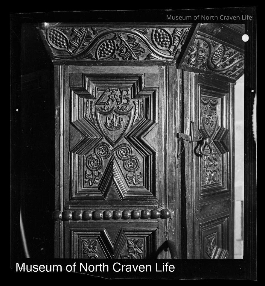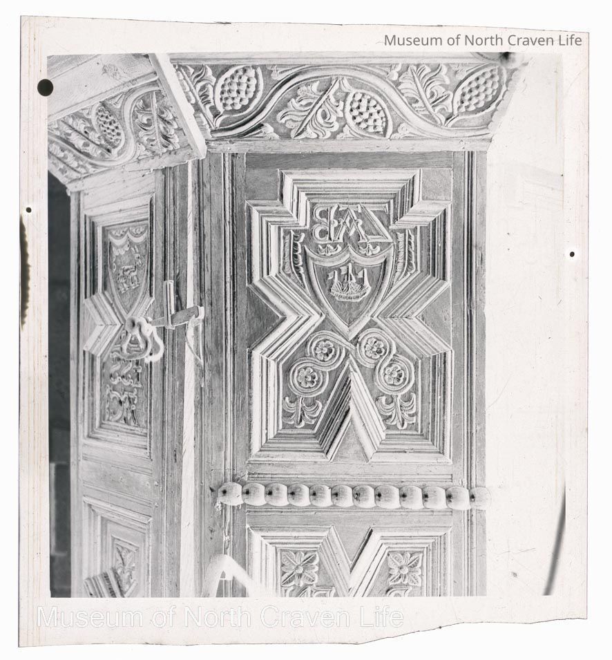 A 2 ¼" gelatin silver acetate film negative. A view of panels of the three decker 17C pulpit in the church of St Alkelda in Giggleswick (https://historicengland.org.uk/listing/the-list/list-entry/1157303?section=official-list-entry)Collection