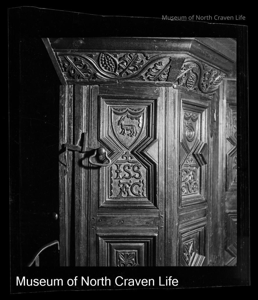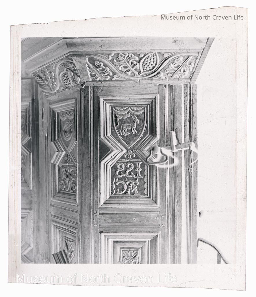 A 2 ¼" gelatin silver acetate film negative. A view of panels of the three decker 17C pulpit in the church of St Alkelda in Giggleswick (https://historicengland.org.uk/listing/the-list/list-entry/1157303?section=official-list-entry)Collection