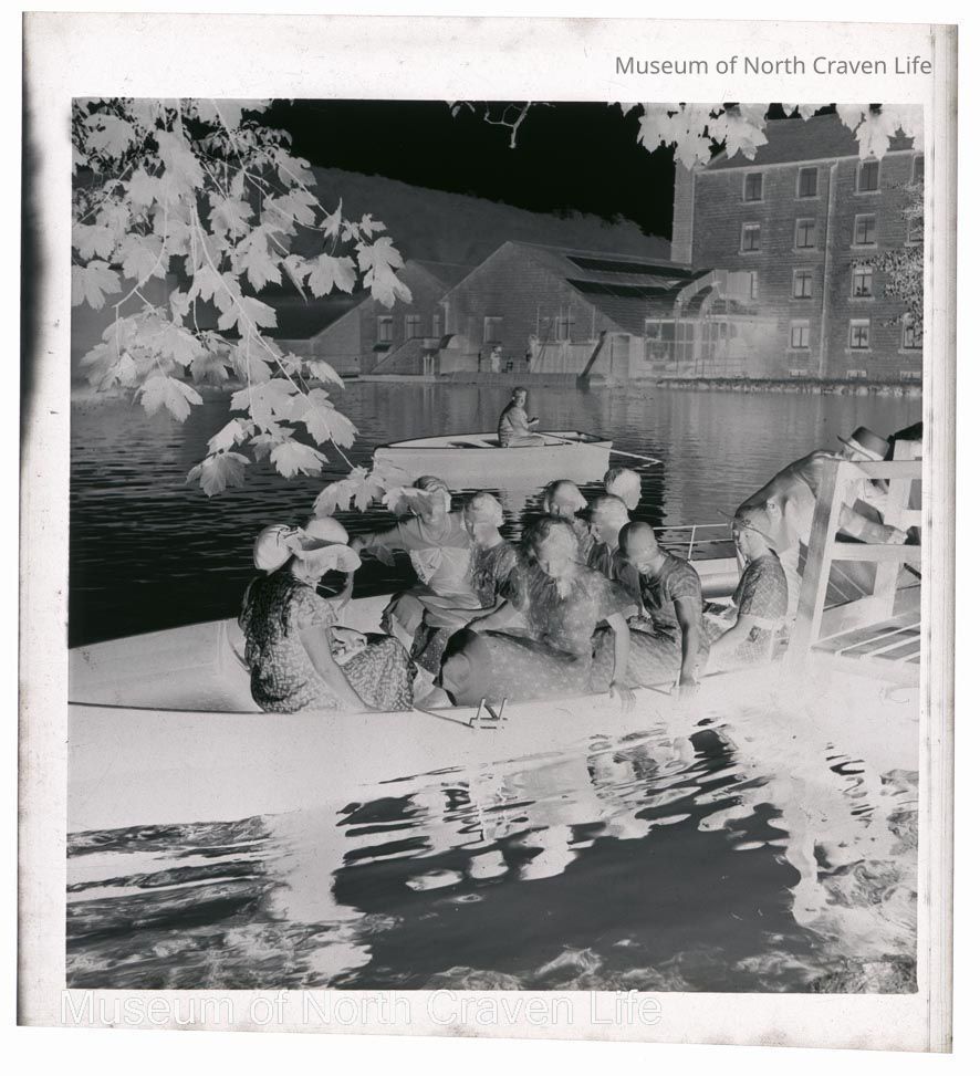 A 2 ¼" gelatin silver acetate film negative. A view of a group of mostly young women in a boat. A second boat appears behind them with a single oarsmanCollection
