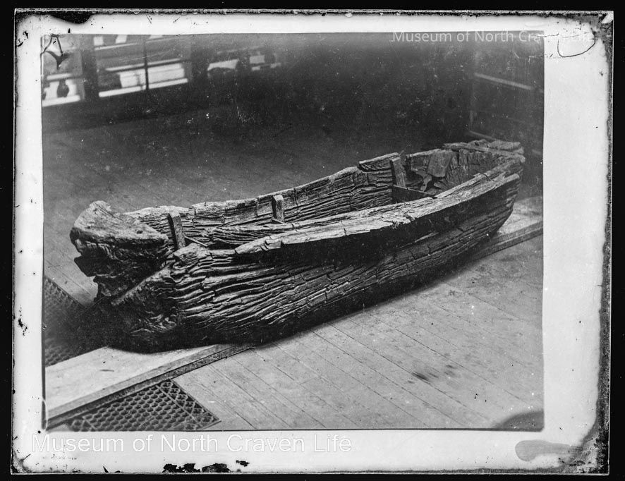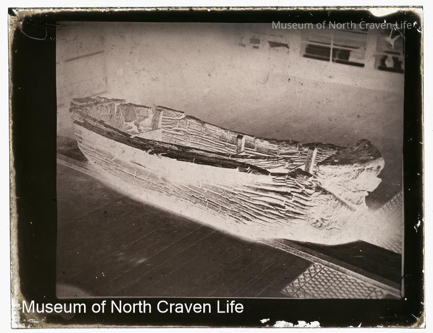 A quarter-plate gelatin silver glass negative. A view of the Giggleswick Tarn Logboat discovered 25th May 1863 at the site of Giggleswick Tarn (at the present Settle golf course). After study it was discovered that the logboat was medieval (around 1335 AD) rather than prehistoric.Collection