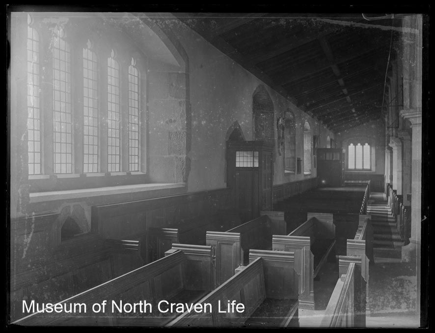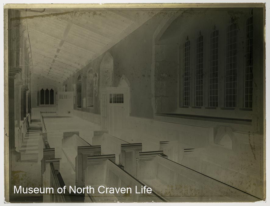 negative, glass plate - St. Alkelda's Church interior of the south aisle looking from east endEntry/Object ID