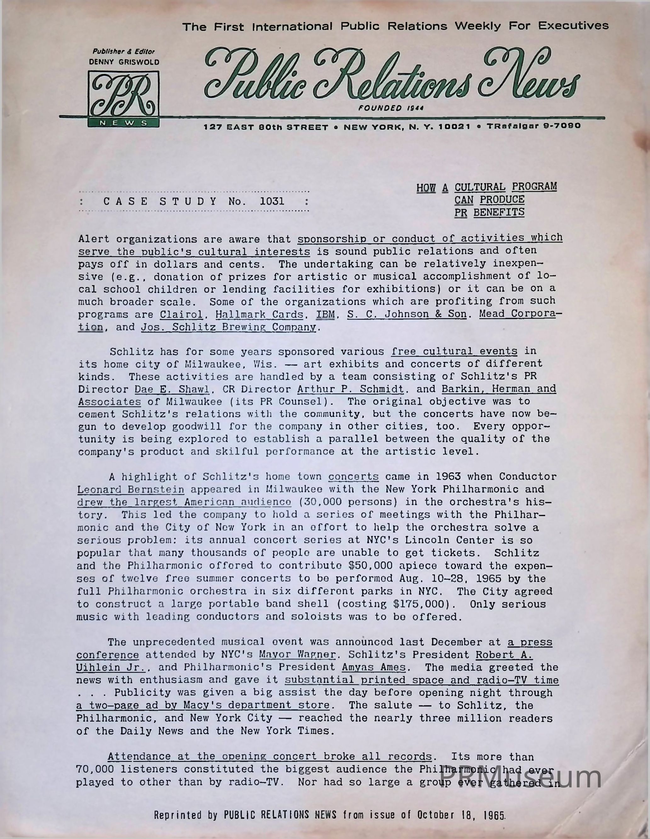 Case Study 1031: How a Cultural Program Can Produce PR BenefitsDescription