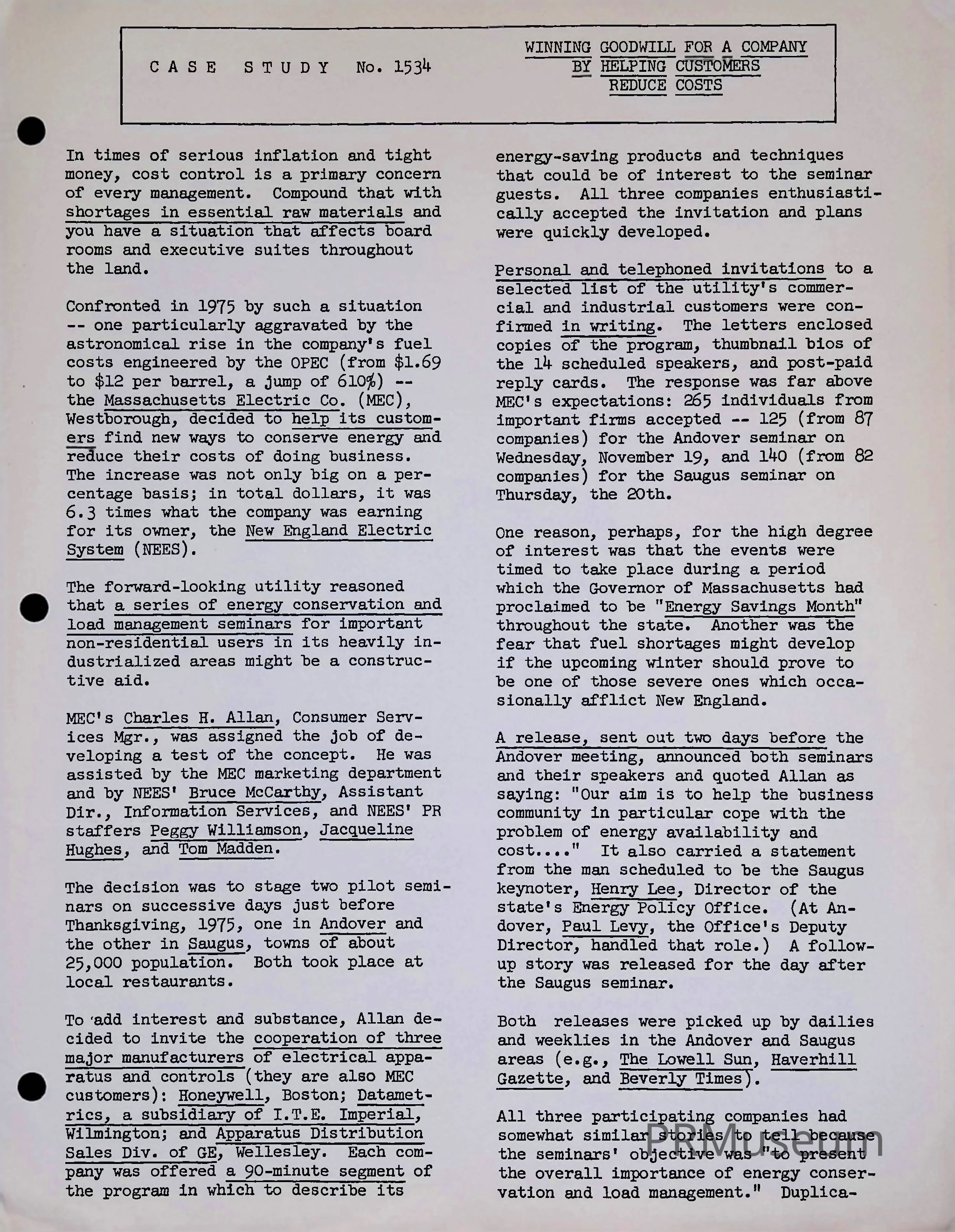 Case Study 1534: Winning Goodwill for a Company by Helping Customers Reduce CostsDescription