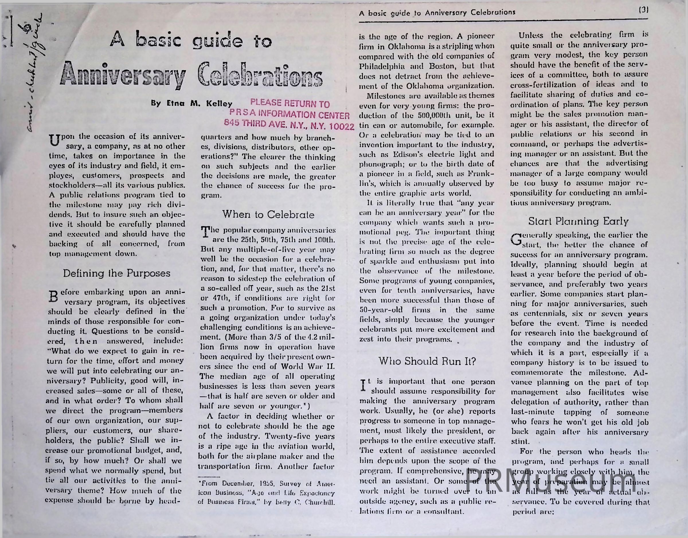 Etna Kelley is known for advising companies on how to celebrate their anniversaries and how to strategize an effective celebration.Acquisition