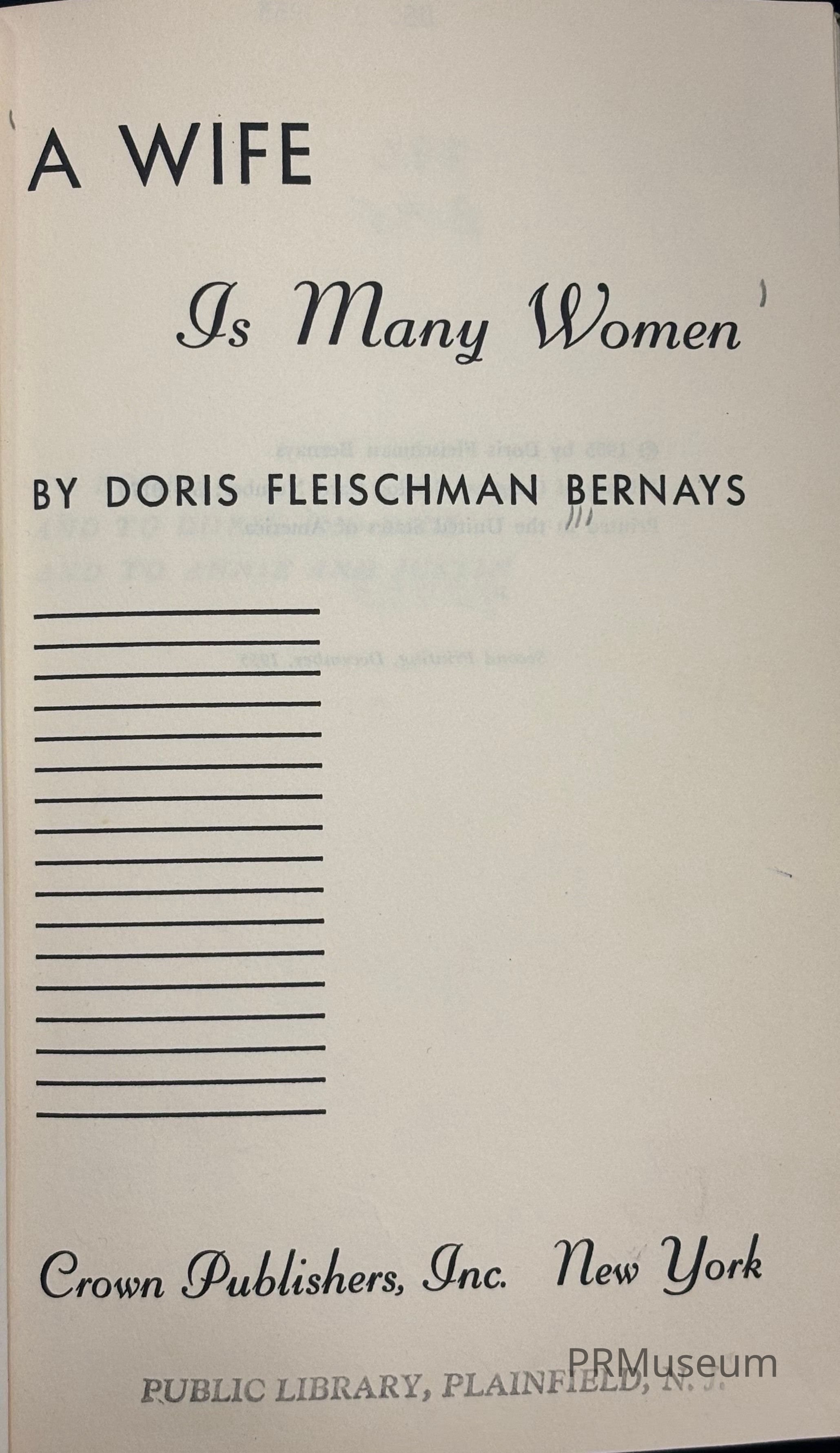 Doris Fleischmnann Bernays is the wife of Edward Bernays, the father of public relations. In this book, discusses the expectations placed on women and the roles they take on, especially in marriage.Acquisition