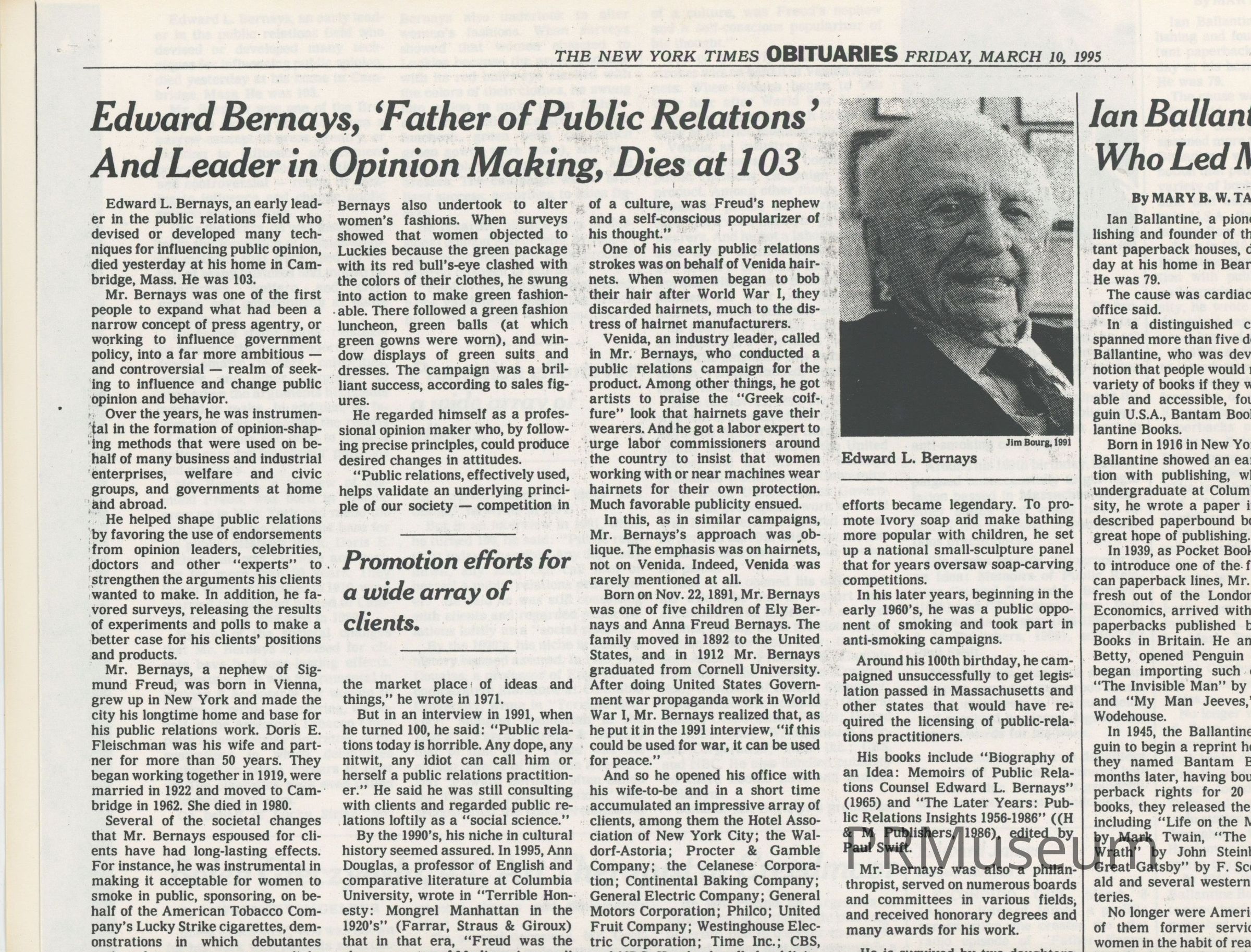 Edward Bernays, 'Father of Public Relations' And Leader in Opinion Making, Dies at 103Tags