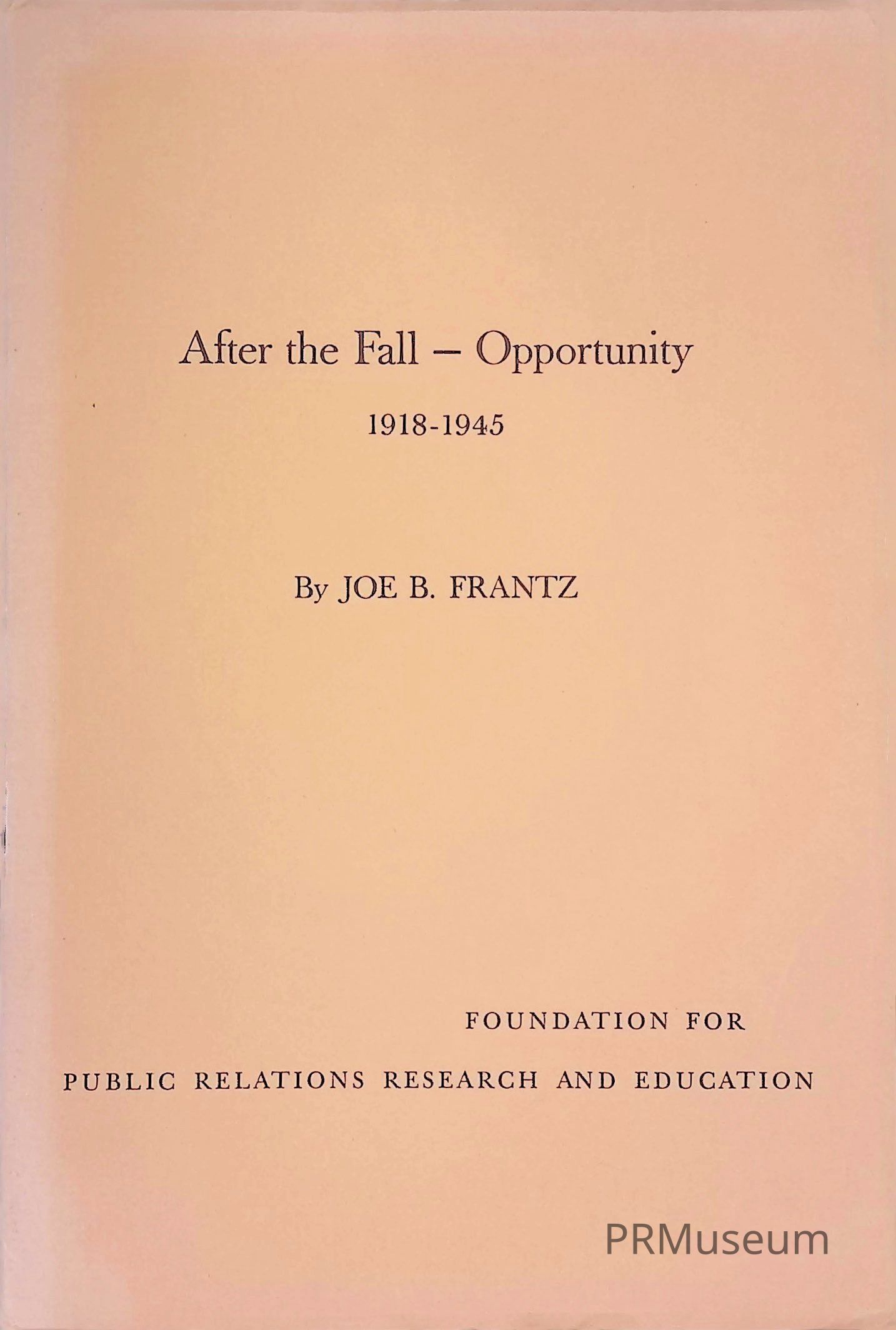 Dr. Joe B. Frantz was a professor and historian who earned degrees in journalism and business history. In his address, Frantz mentions the evolution of the public relations field at the time of publication, noting that the idea of public relations was evolving alongside business and the responsibility of good public relations falls on the company.Acquisition