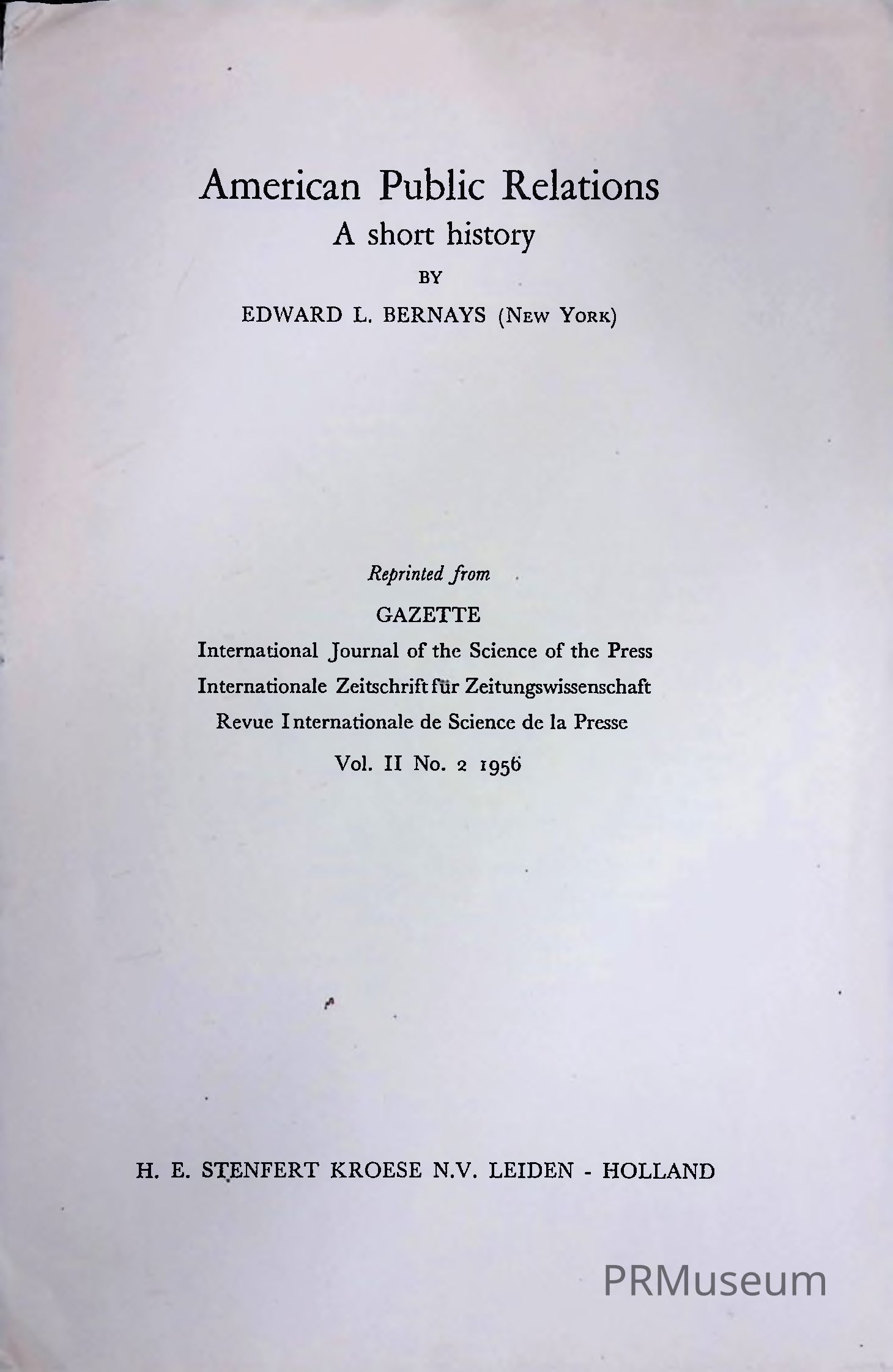 An historical account written by Edward Bernays focusing on the history of American Public Relations.Context