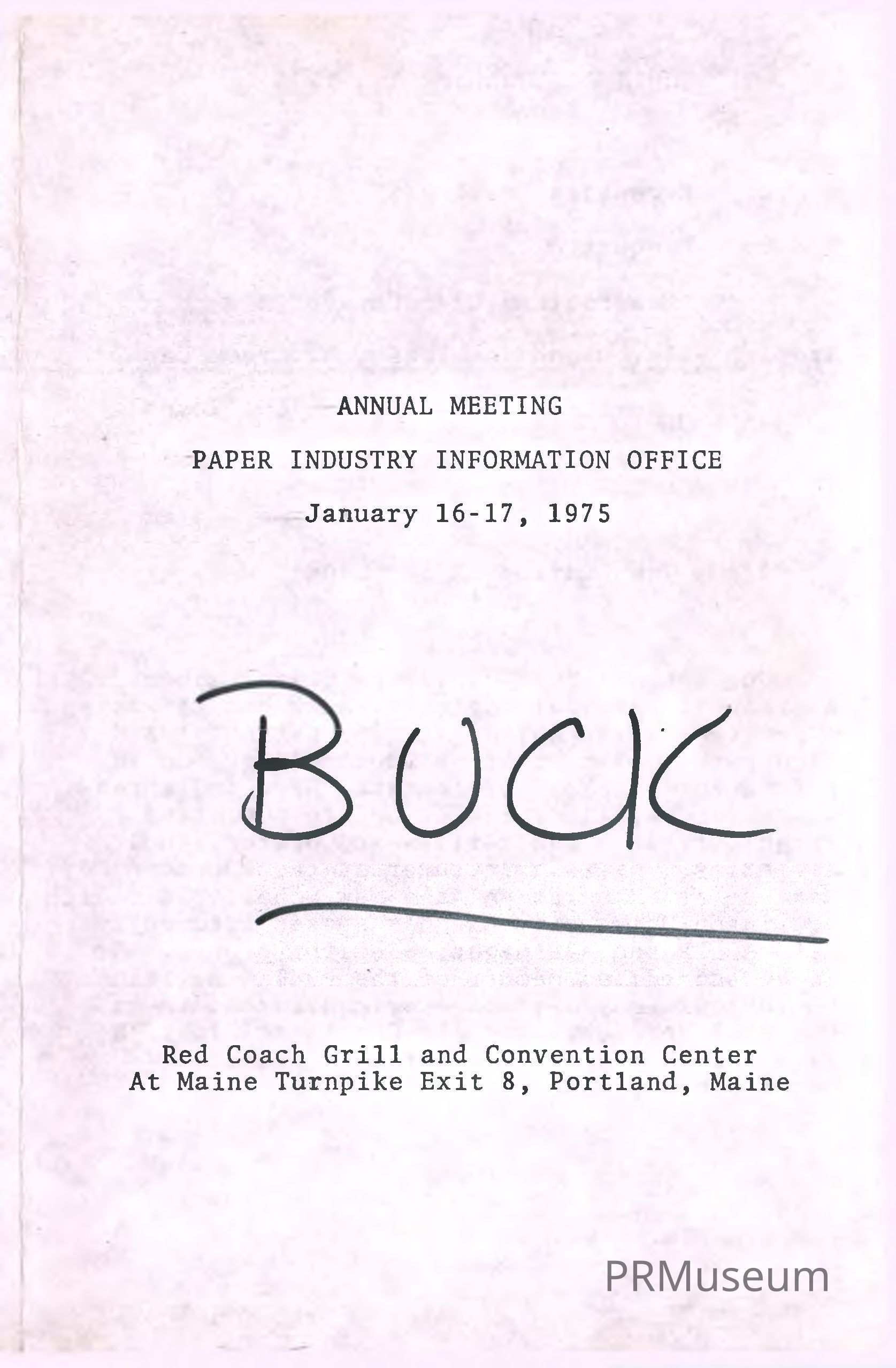 The Banquet was held at Red Coach Grill and Convention Center in Portland Maine from January 16-17,1975. Elias "Buck" Buchwald was the Banquet speaker and was Director of Burson-Marsteller at the time.Collection