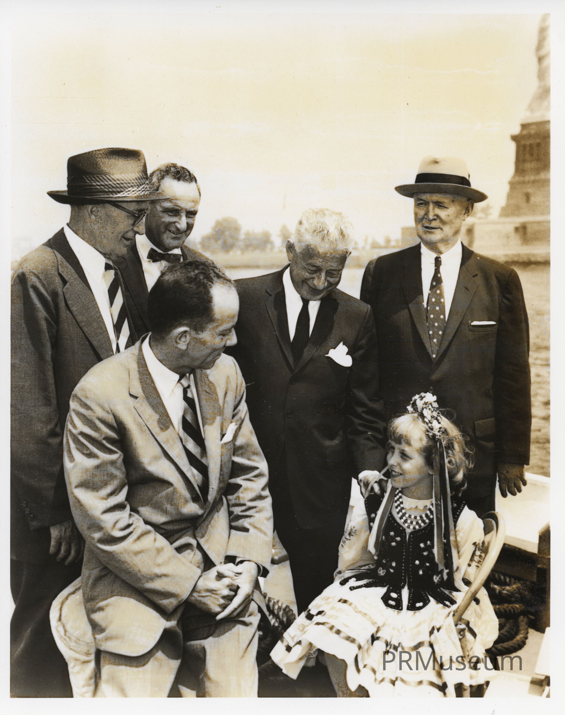 Arthur W. Page and business associates and young girl with Statue of Liberty Island in backgroundAcquisition