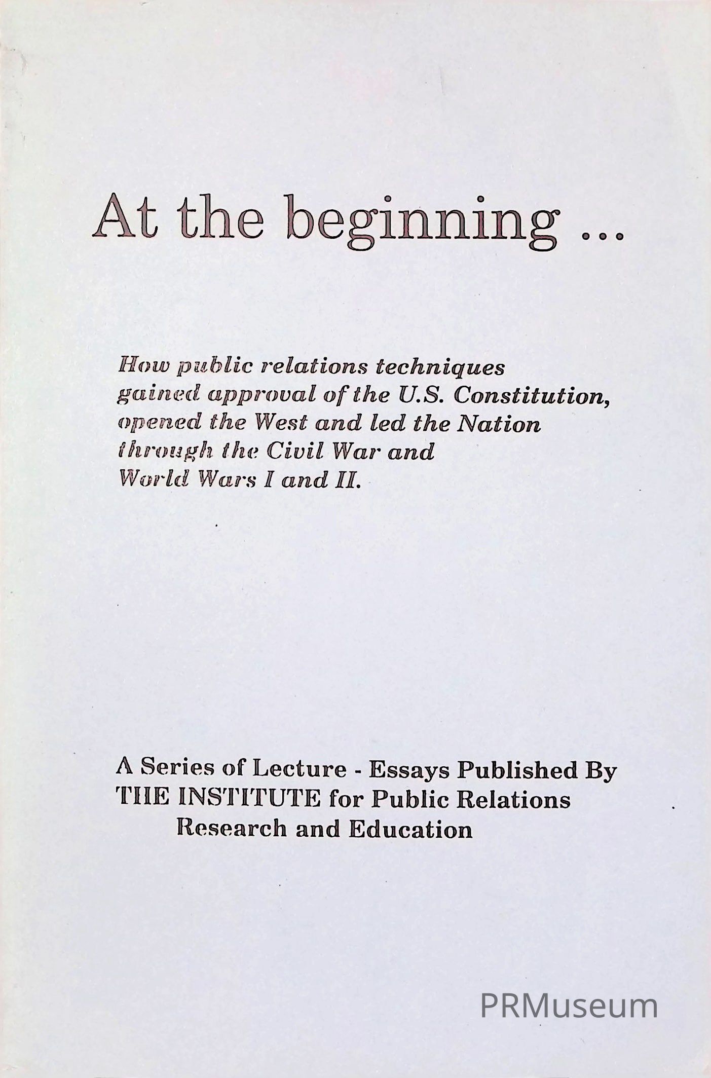 At the beginning…: How Public Relations Techniques Gained Approval of the U.S. Constitution, Opened the West, and Led the Nation Through the Civil War and World Wars I and IIEntry/Object ID