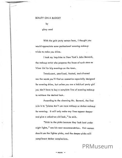 A beauty column written by Glory Read, a public relations executive who had a wide experience in the beauty/fashion industry and journalist.Context