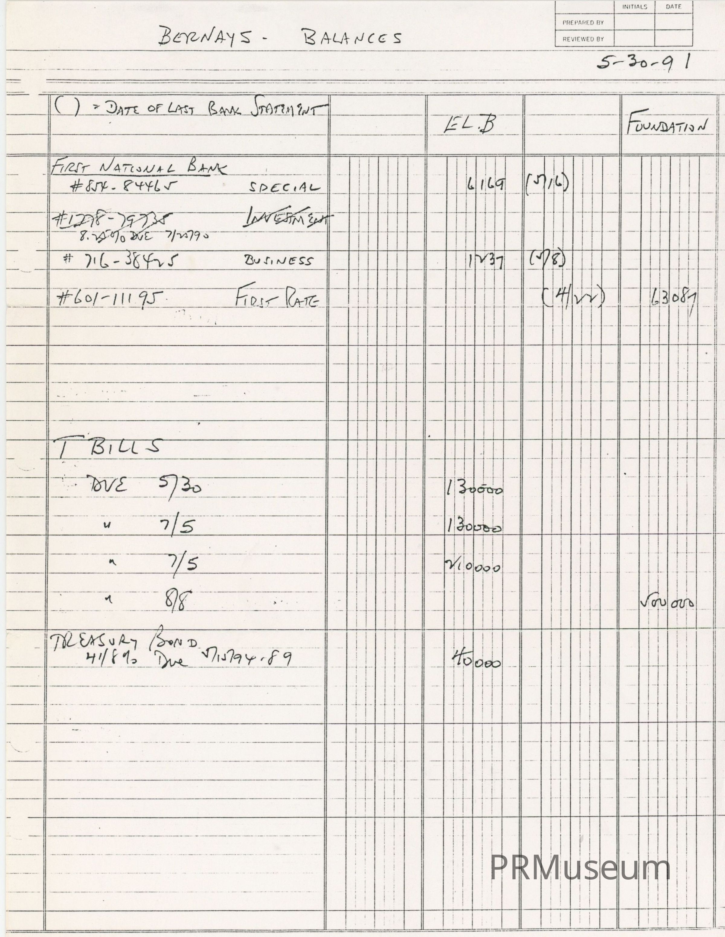photocopy of handwritten balance sheet for Edward L. Bernays and (Bernays) Foundation. As found in Bernays's Inbox.Acquisition