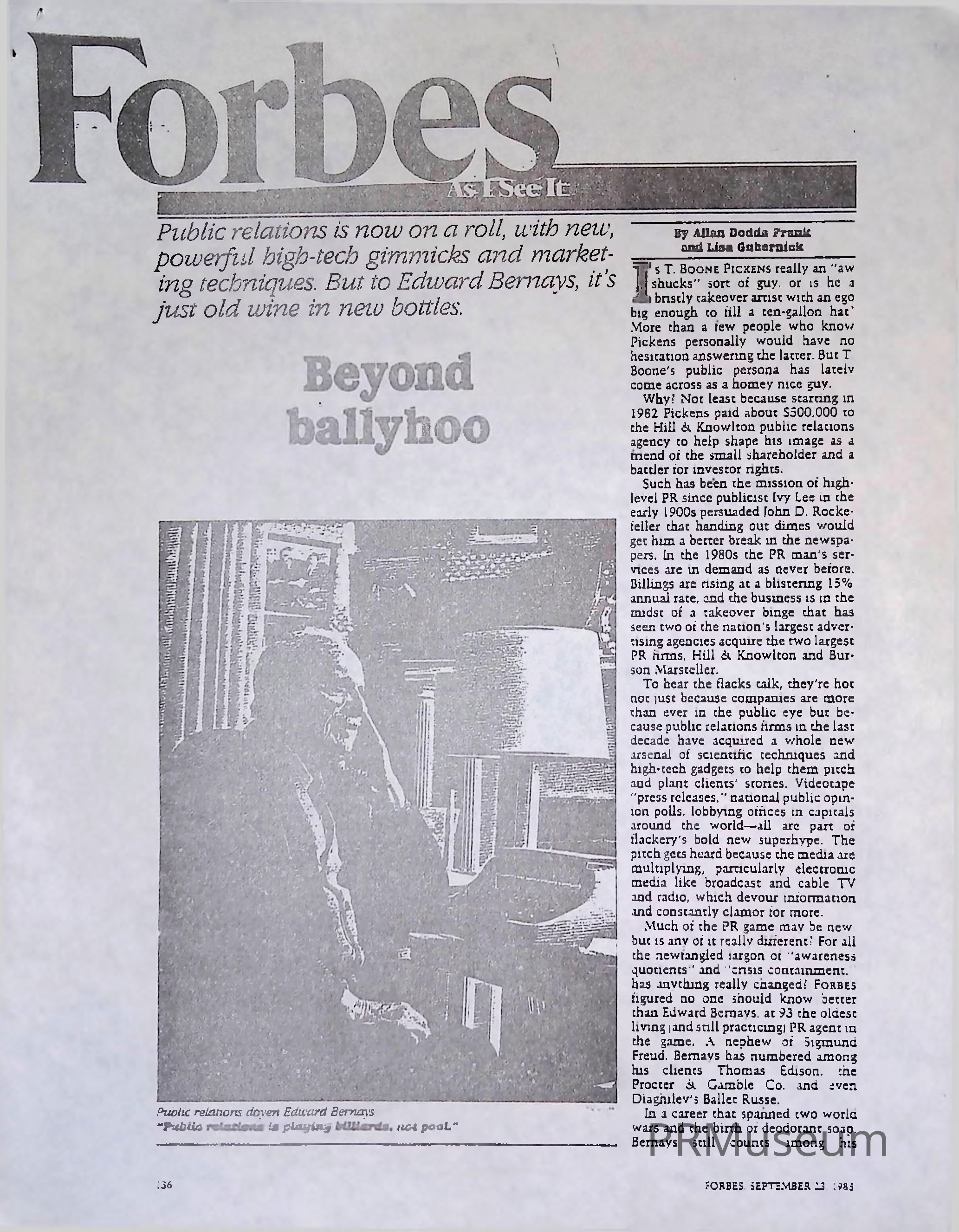 An article based on Edward Bernays' outlook on the evolution of public relations at 93 years old.Acquisition