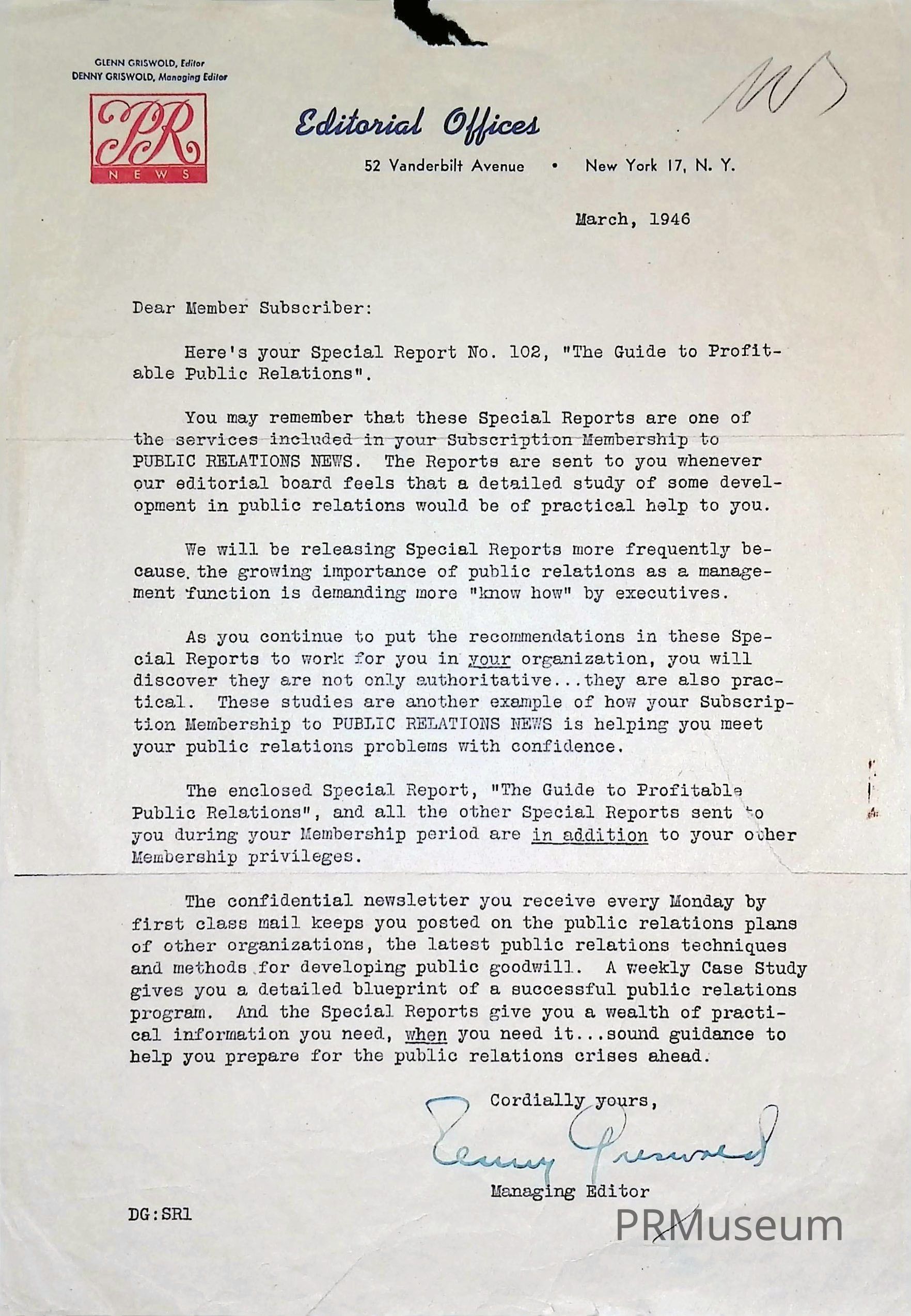 PR News editor Denny Grisold writes to subscribers about PR News Special Report No. 102Made/Created