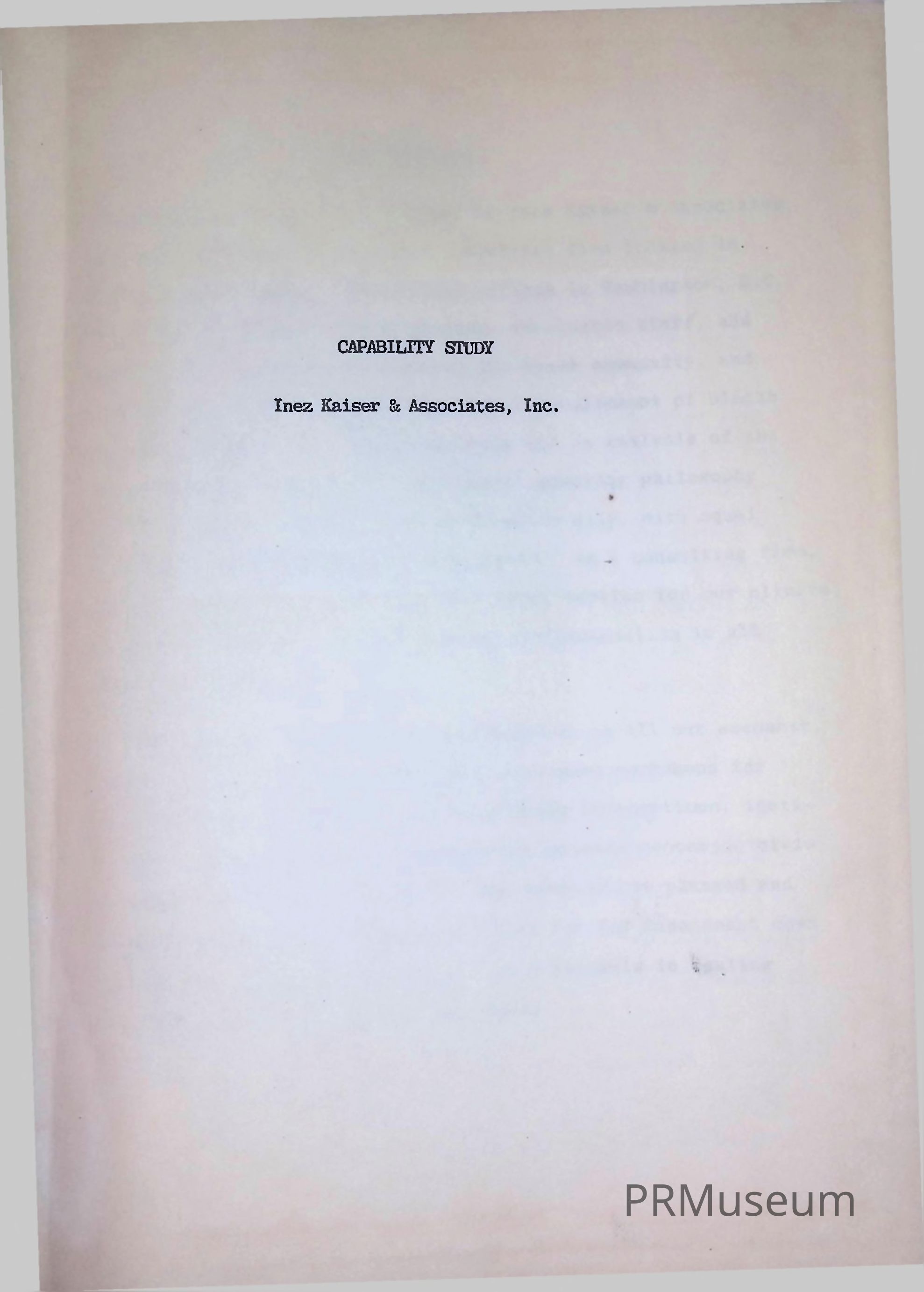 Capability Study, Inez Kaiser & Associates, Inc.Entry/Object ID