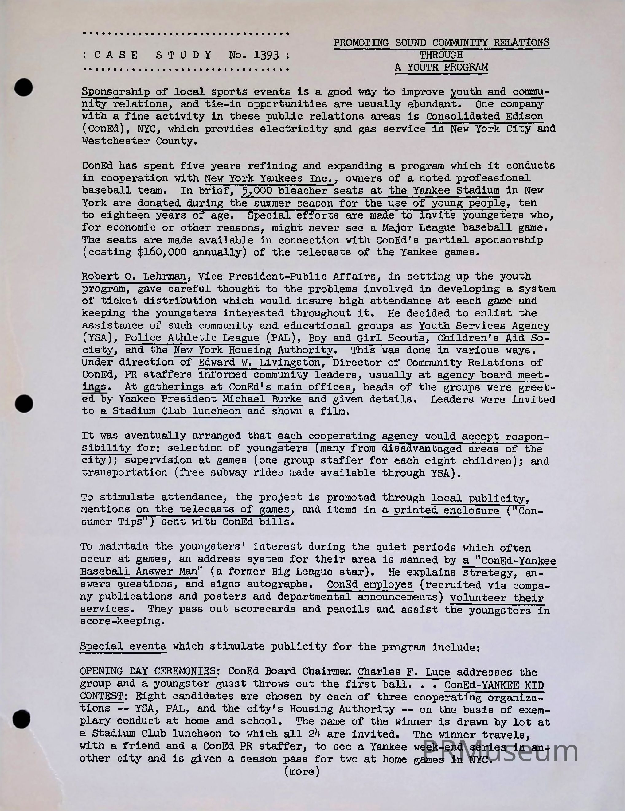 Case Study 1393: Promoting Sound Community Relations Through a Youth ProgramAcquisition