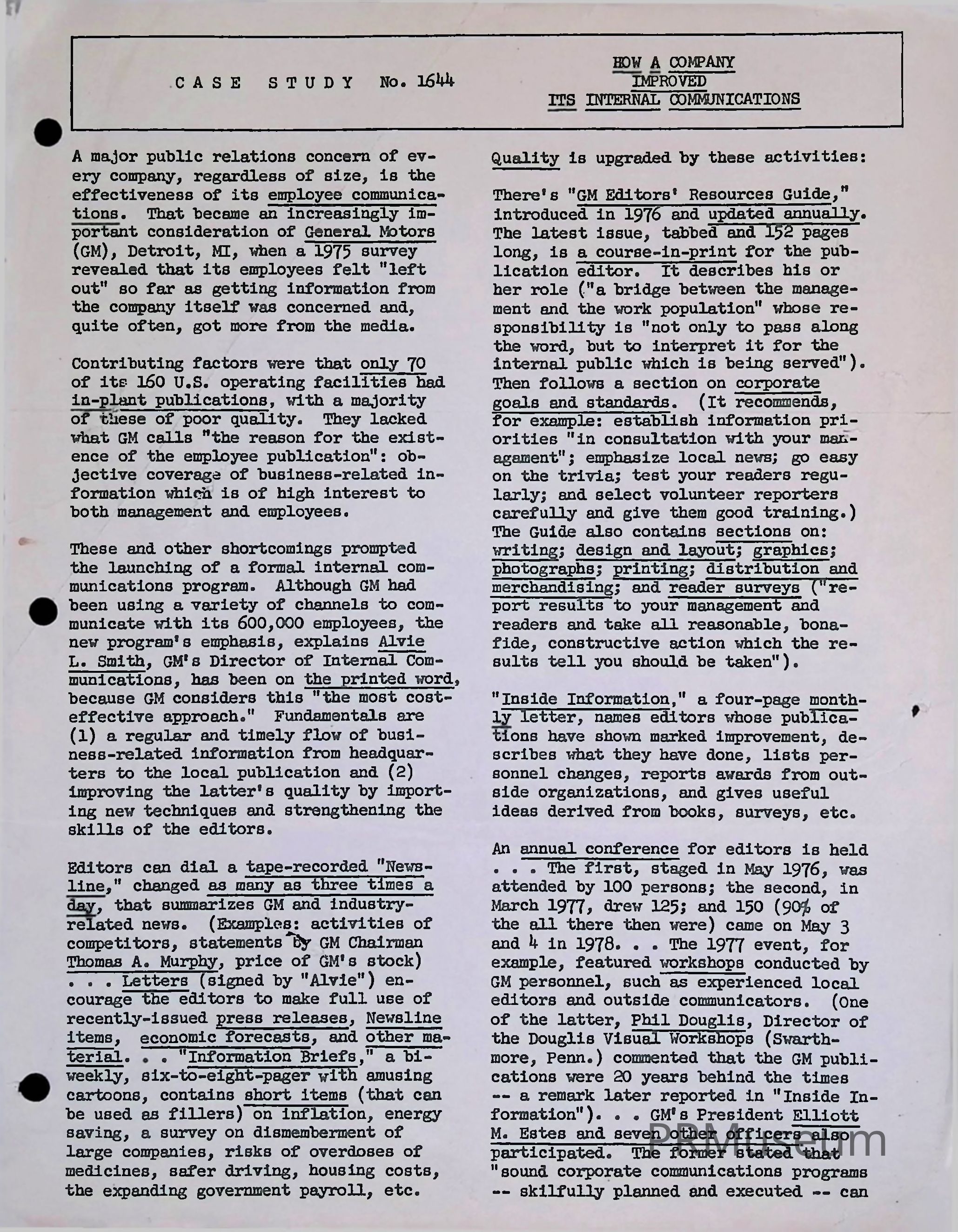 Case Study 1644: How a Company Improved Its Internal CommunicationsAcquisition