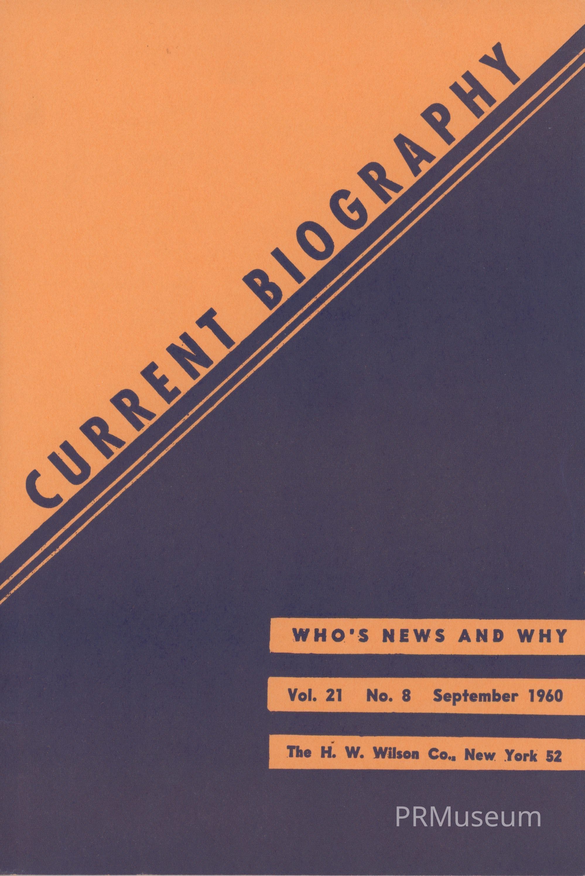 5 copies; Dr. Franz Alexander, Gordon W. Allport, Gertrude Berg, Svetlana Beriosova, Edward L. Bernays, Louis A. Boyd, Van Wyck Brooks, Arthur A. Cohen, Kees Van Dongen, Buford Ellington, Bernard Geis, David Hunter, Bruno Kreisky, Gina Lollobrigida, L. D. Mallory, Umberto Mastroianni, Arnold Palmer, Anthony Perkins, Laurian Cardinak Rugambwa, Françoise Sagan, Robert L. Stafford, Väinö Alfred Tanner