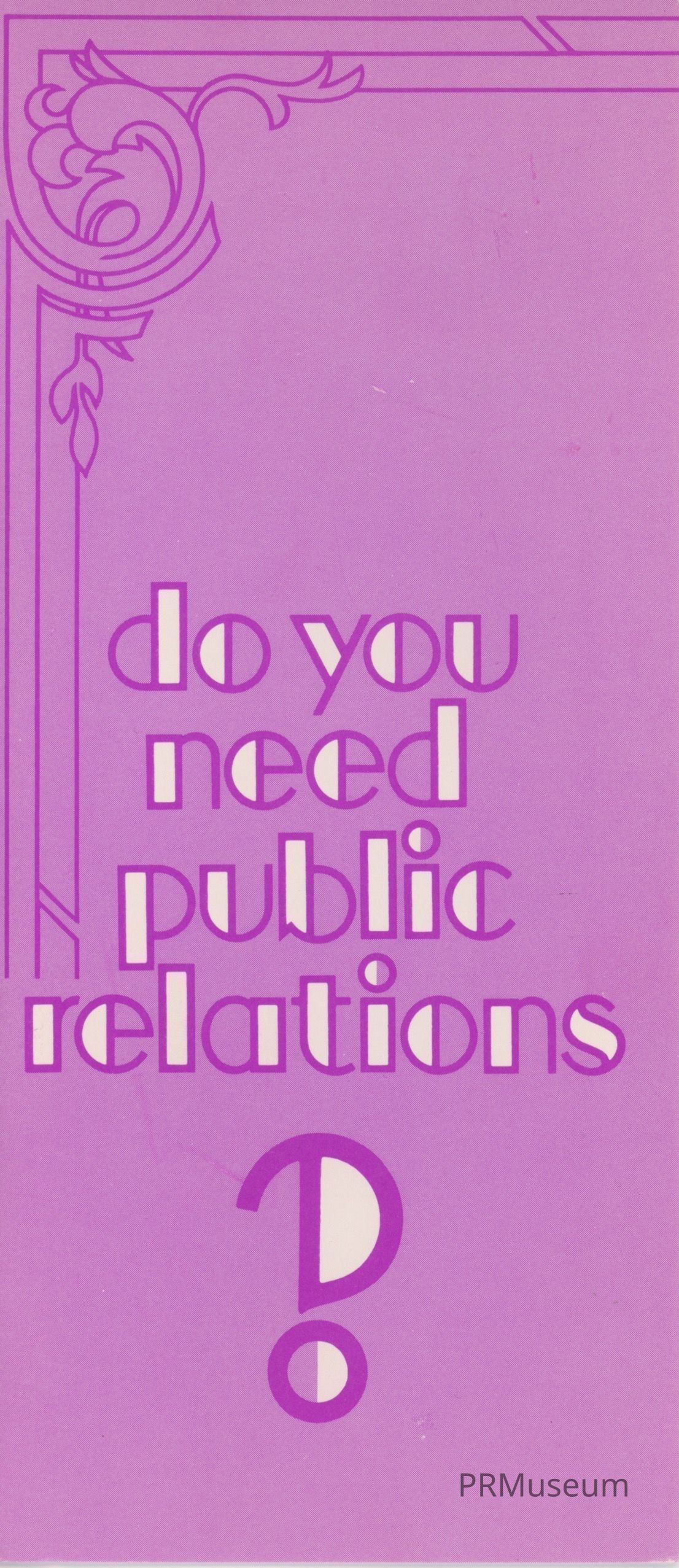 Public Relations Counsel, Inc. is a public relations agency founded in 1958 that has developed numerous public relations programs and campaigns for companies such as Johnson & Johnson and Avon Beauty. Its president, Glory Read, is well known for her close collaboration with Johnson & Johnson on campaigns including “Baby Yourself,” which promoted baby powder to adult consumers. This promotional PRC brochure is designed to inform prospective clients about the agency’s identity, personnel, and range of services.Category