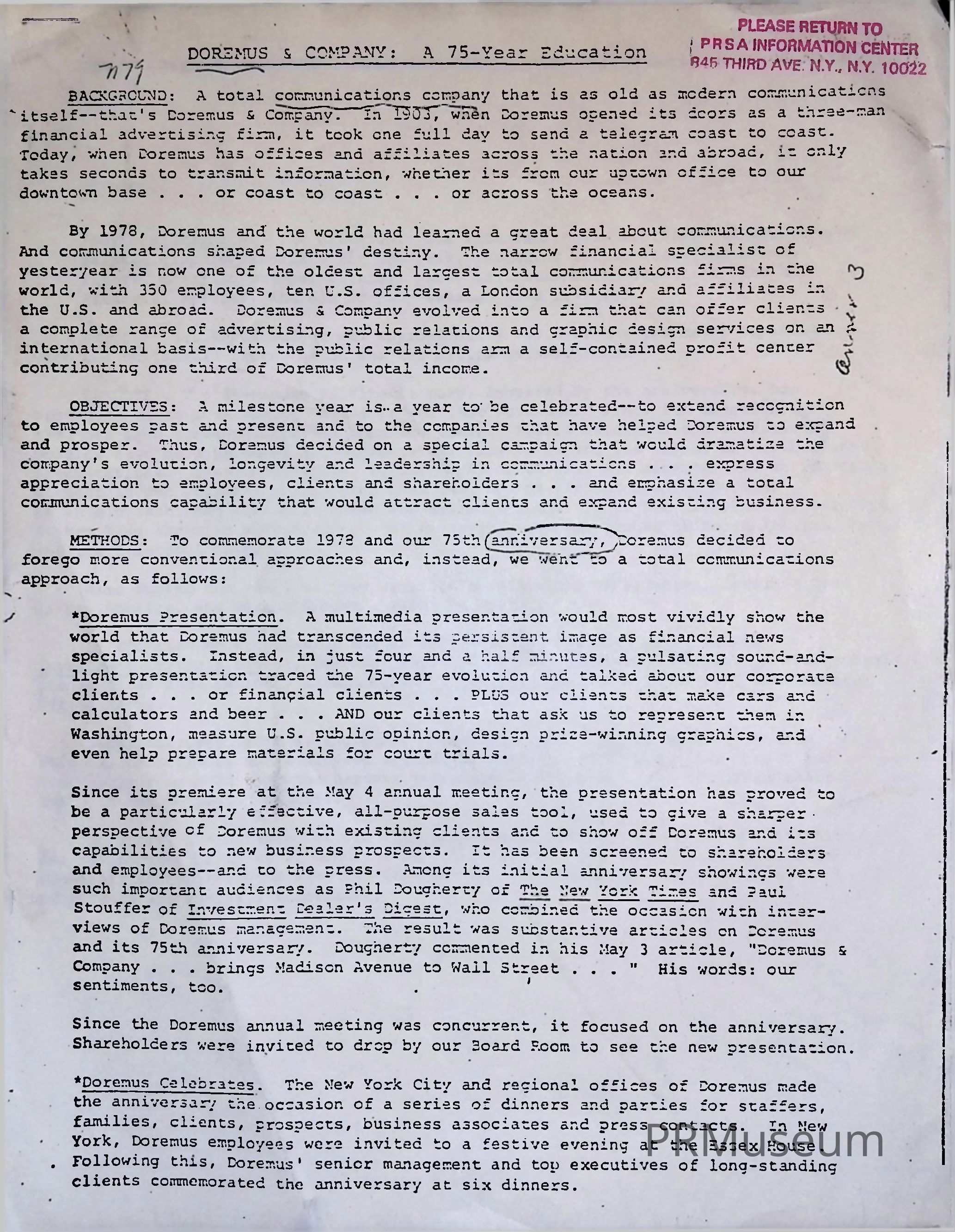 Doremus & Company: A 75-Year EducationAcquisition