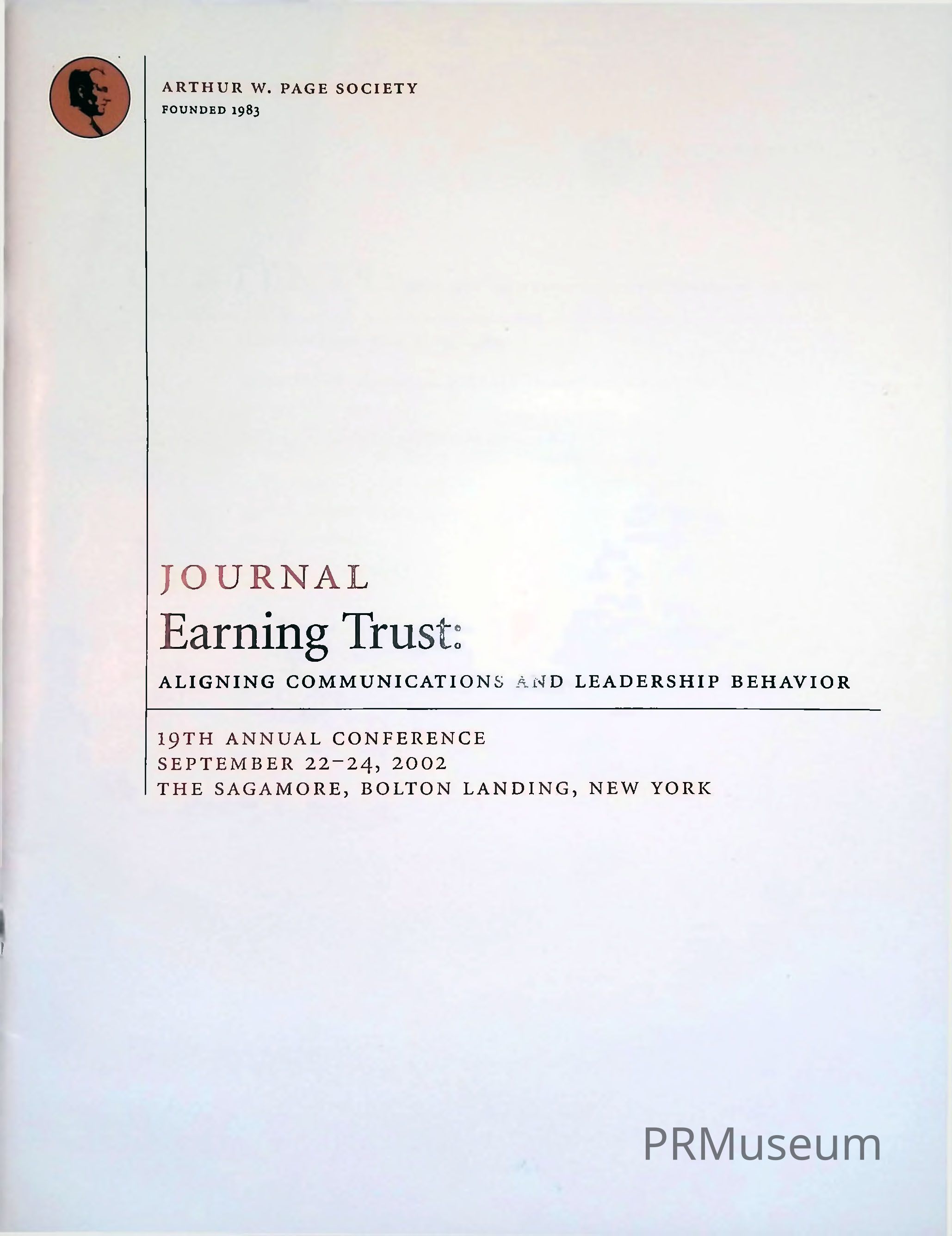 The Arthur W. Page Society is an organization that aims to help strengthen the impact of communicators and their teams and to lead the profession into the future. At the 19th Annual Conference, the Arthur Page Society focused on the idea of earning public trust and how chief communicators should go about that in a way that prioritizes the public and its security.Publication Details