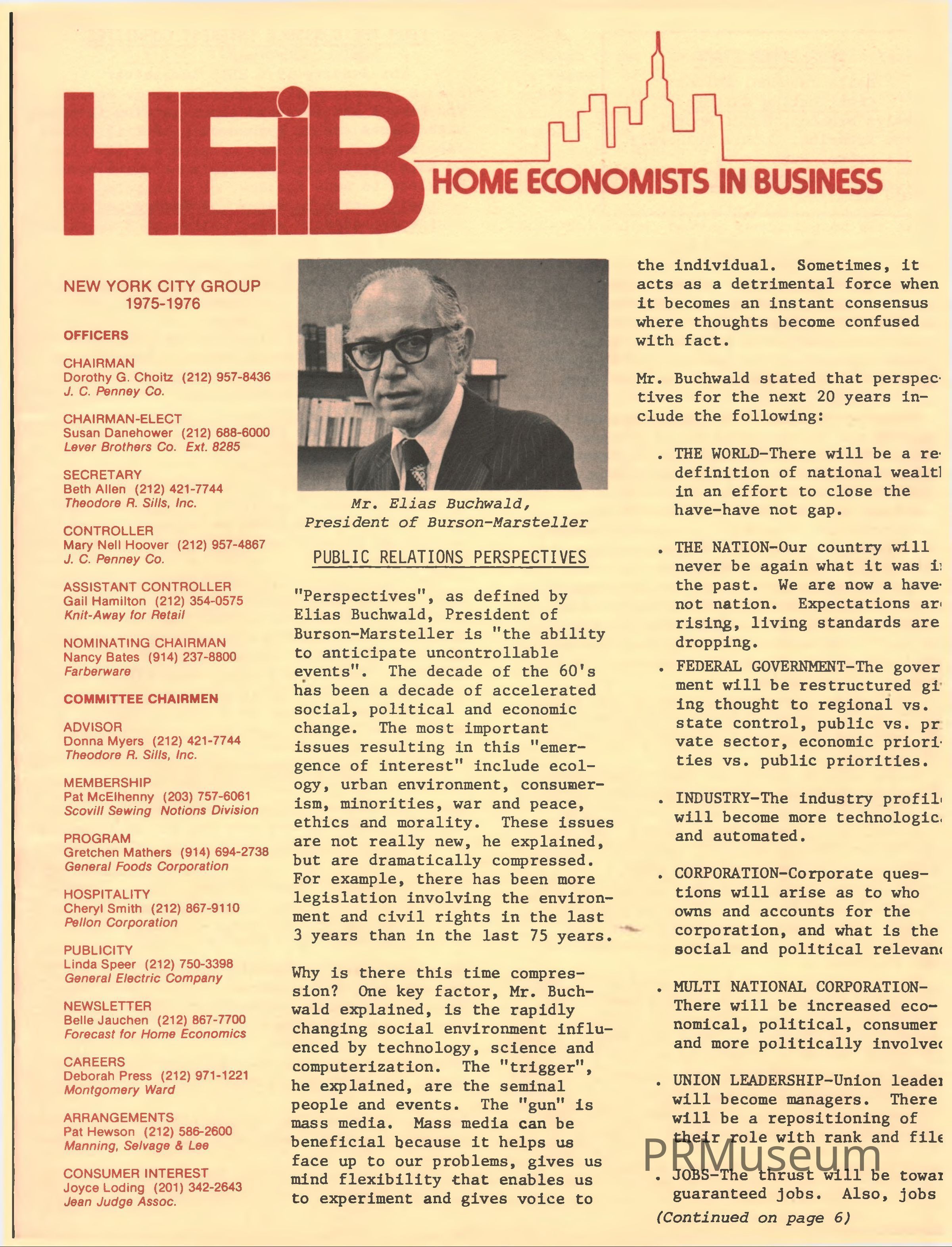 HEIB included an excerpt regarding Elias "Buck" Buchwald and his perspective of time compression and how it impacts social environments.Collection