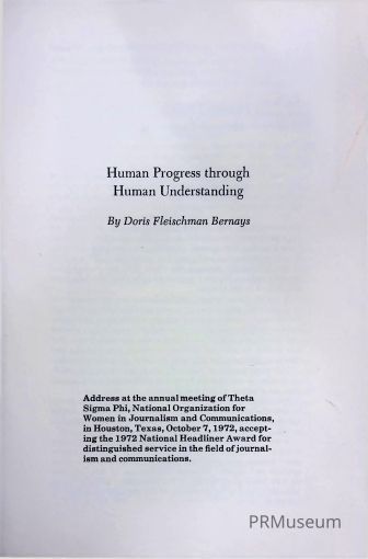 Address at the annual meeting of Theta Sigma Phi, National Organization for Women in Journalism and Communications, in Houston Texas, October 7, 1972, National Headliner Award for distinguished service in the field of journalism and communications.Category