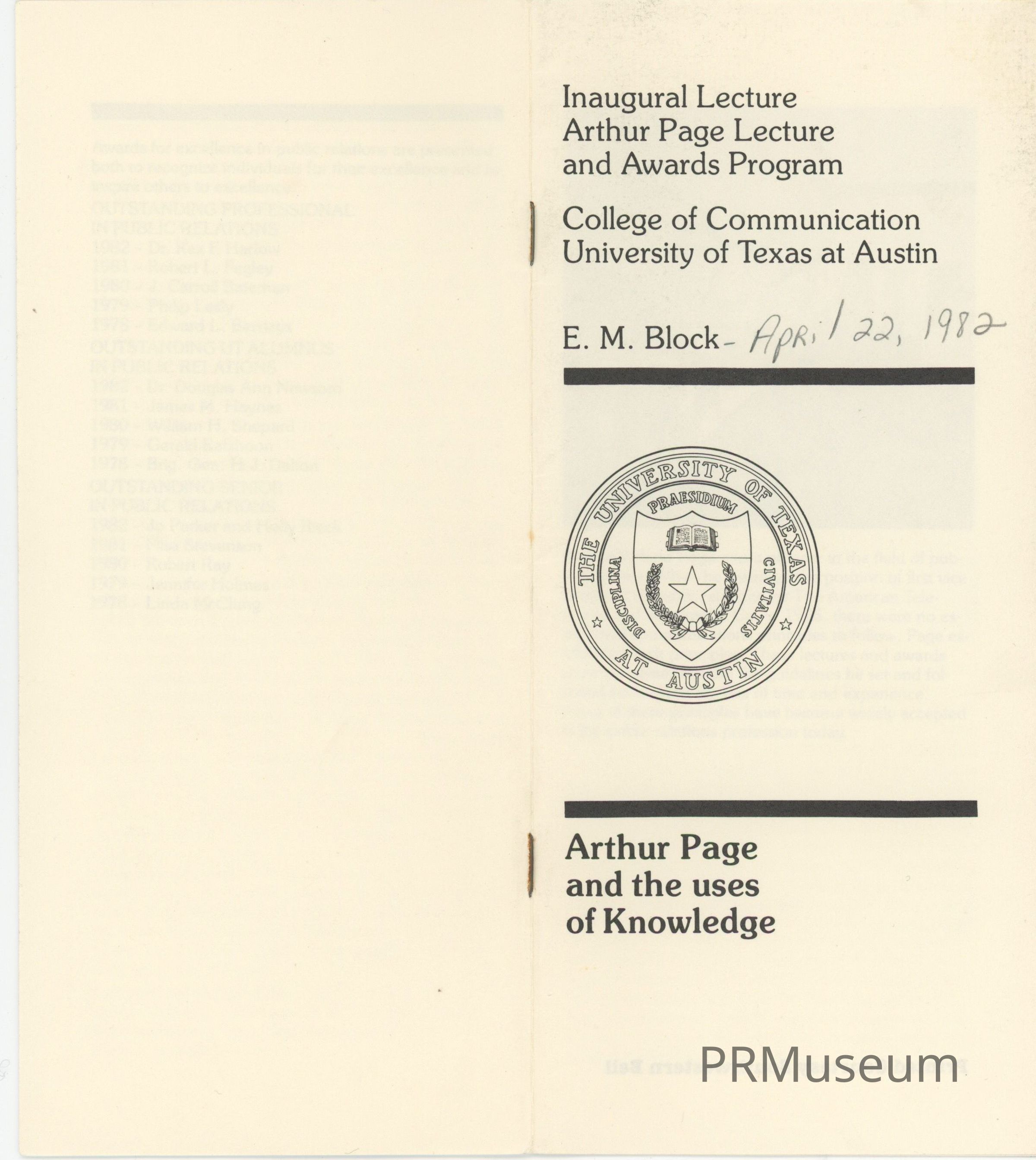 Inaugural Lecture: Arthur Page Lecture and Awards Program, "Arthur Page and the Uses of Knowledge"Tags