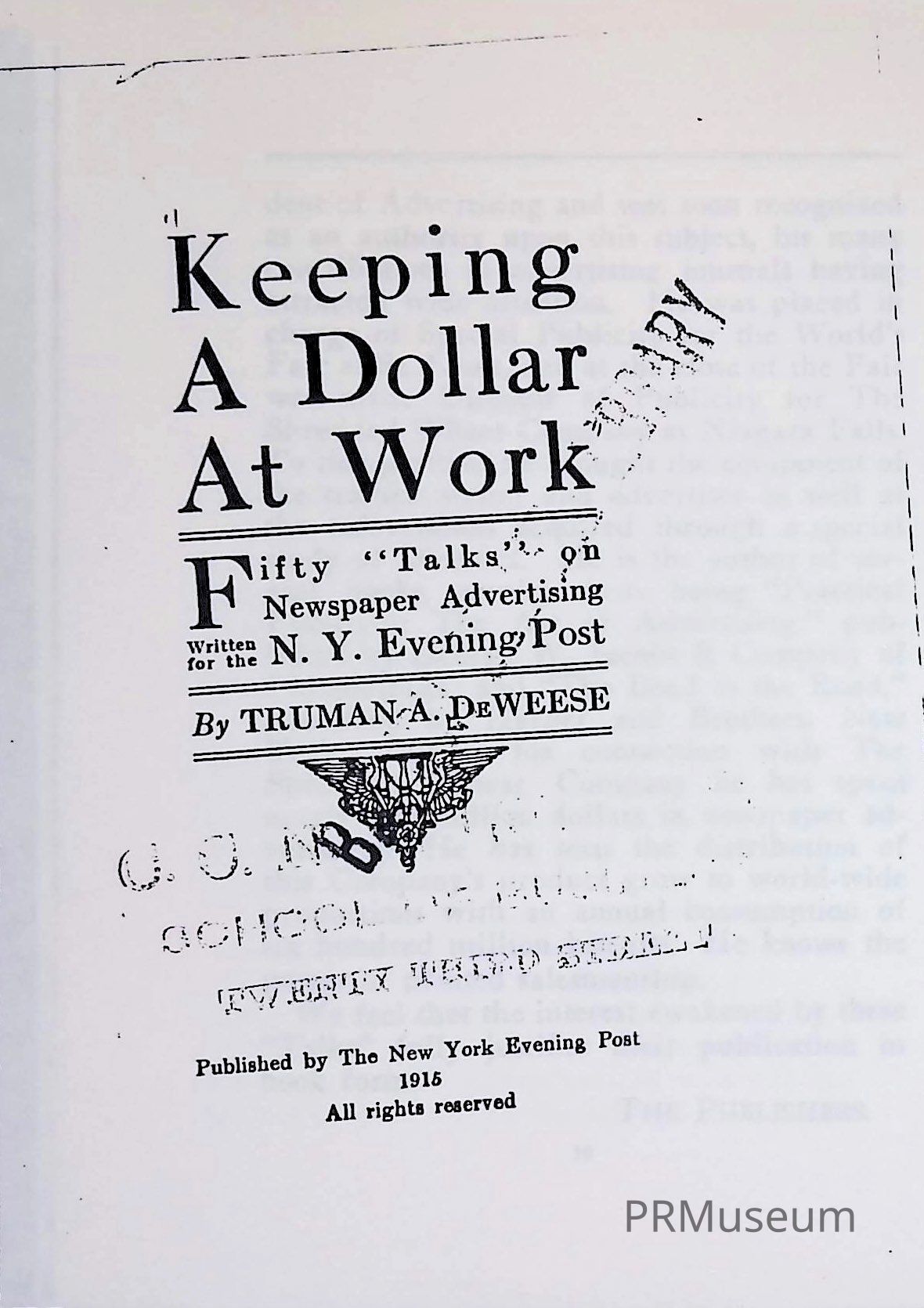 As Newspapers were the primary source of information for many at that time, it was a critical space to advertise effectively. Many advertising practices outlined in this book played critical role in the early development of public relations as an industry.Category