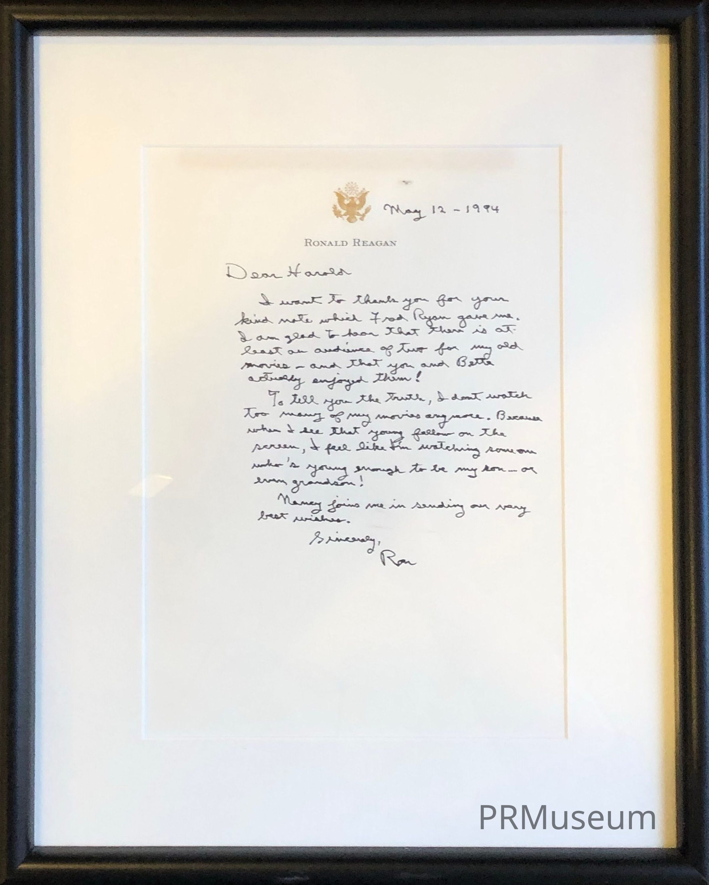 Photocopy of letter to Harold Ronald Reagan's presidential staioneryCreated By