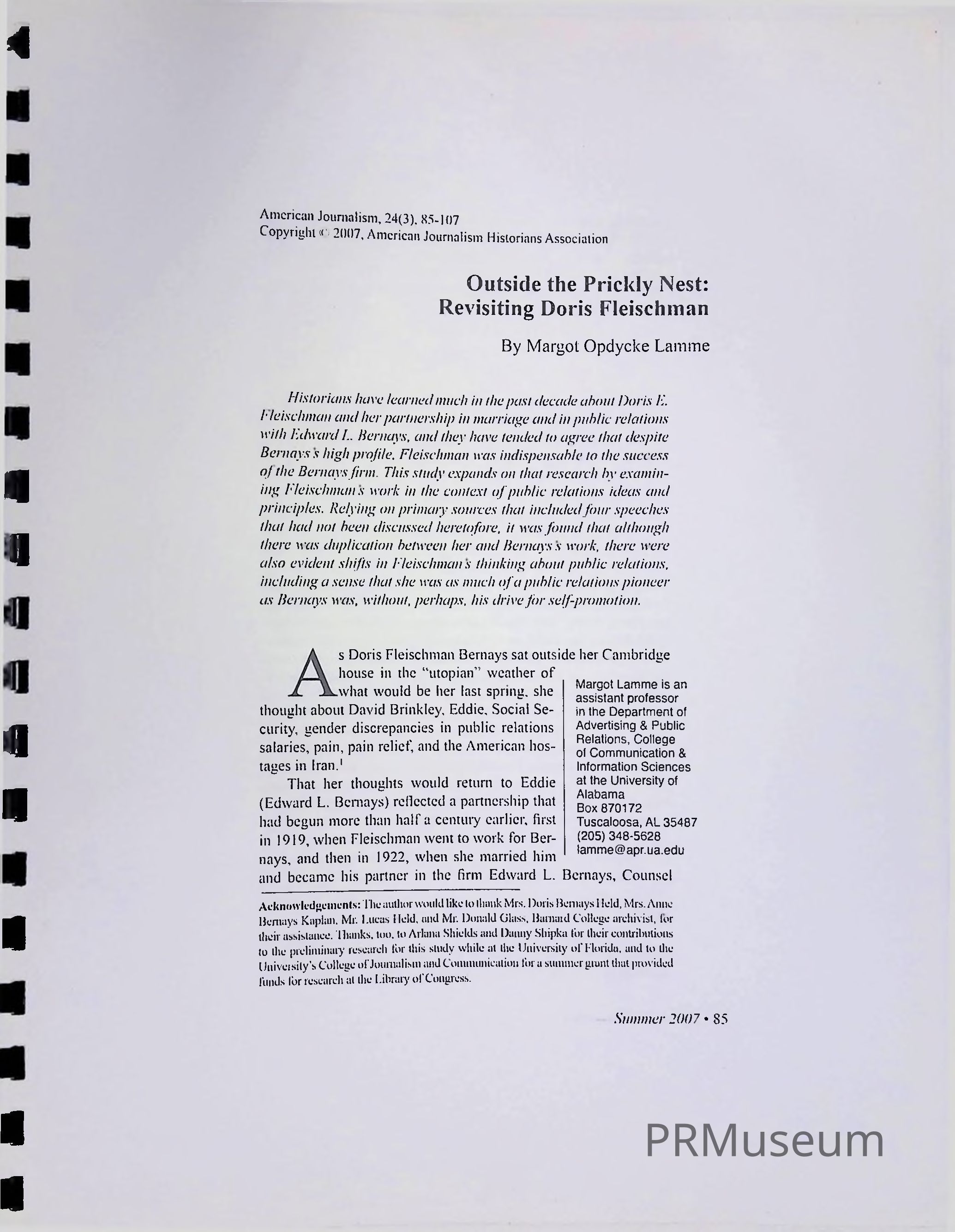 A study expanding on the work of Doris Fleischman's public relations career and her contributions to the public relations field.Context
