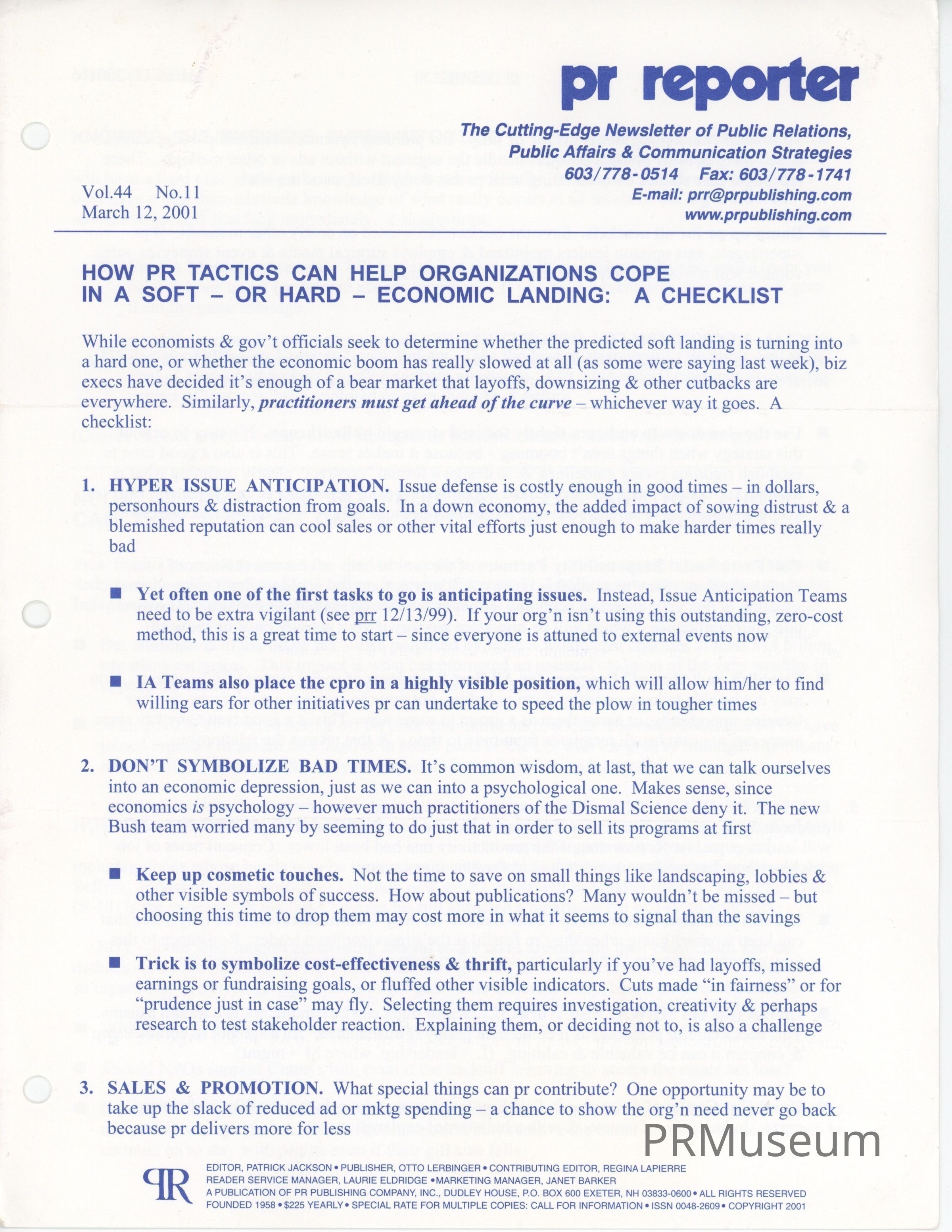 How PR tactics can help organizations cope in a soft – or hard – economic landing: a checklistContext
