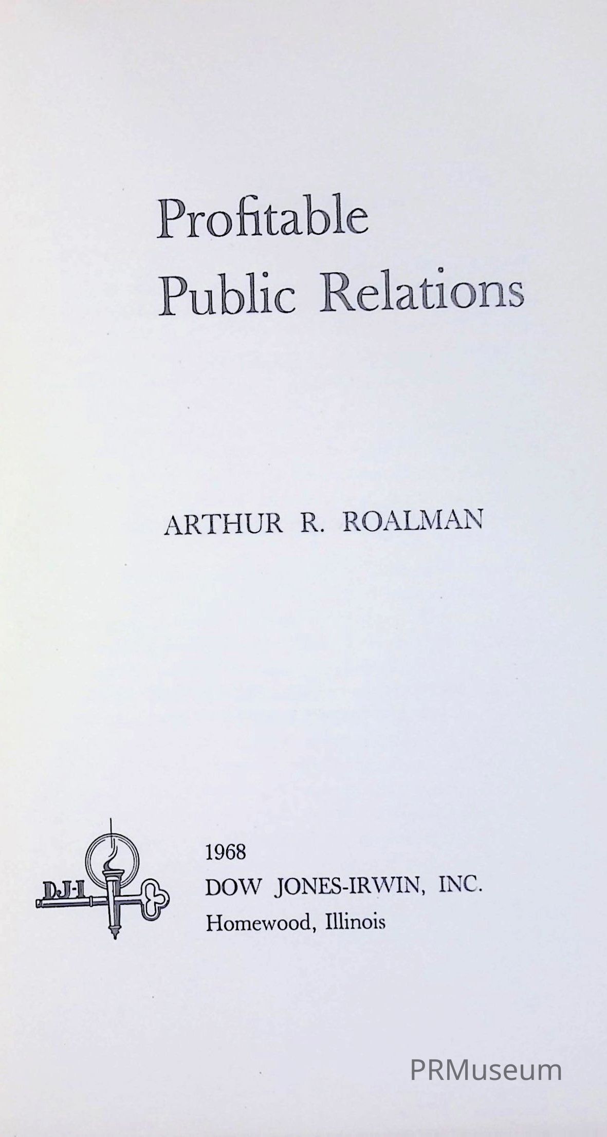 Arthur R. Roalman was a senior vice president of a public relations firm and later on opened his own. In this book, Roalman pops some of the mythical balloons of the public relations business and points out how latest developments can be used most profitably. Rolaman candidly shows the reader how to achieve their public relations objectives.Book Details