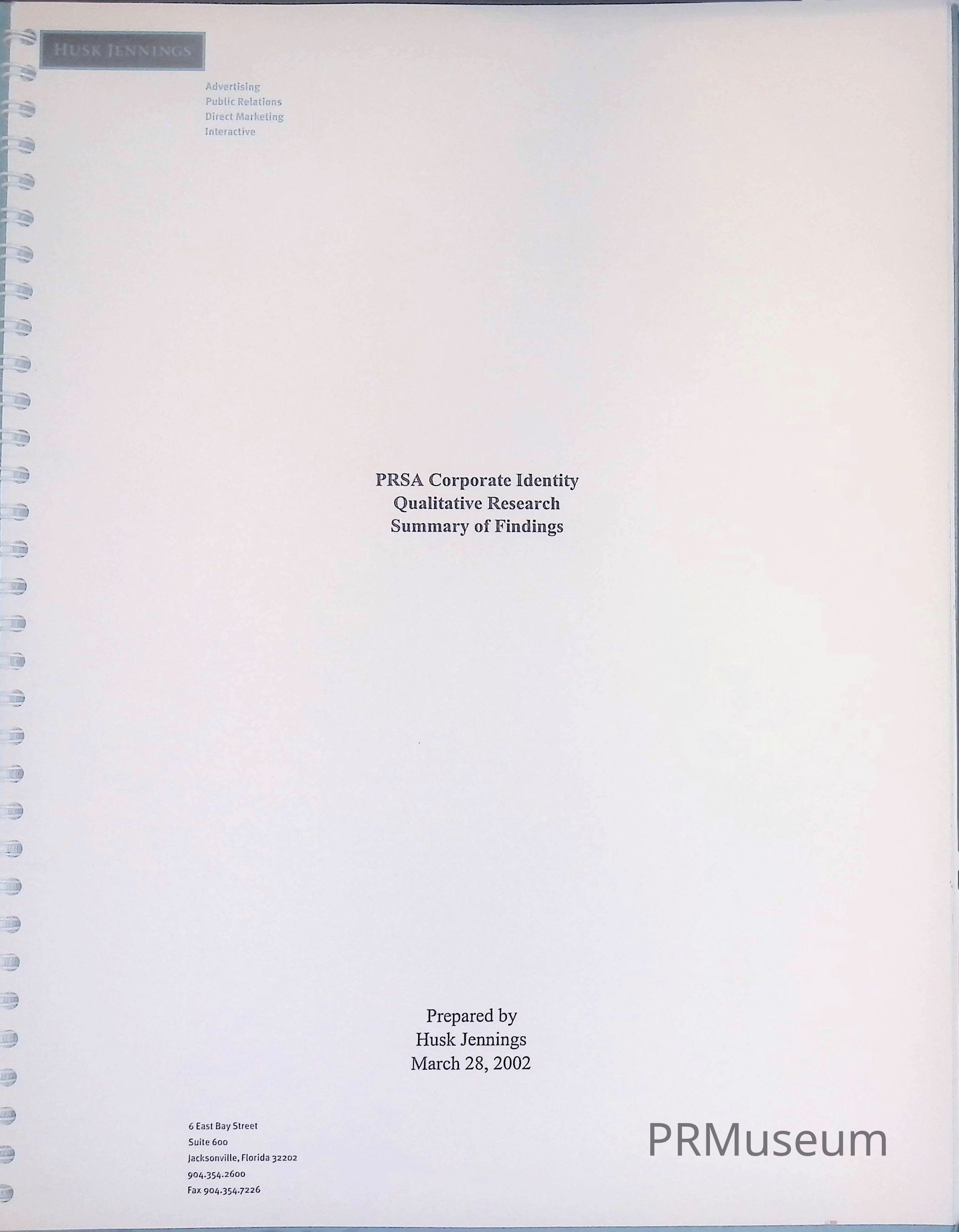PRSA Corporate Identity Qualitative Summary of FindingsEntry/Object ID