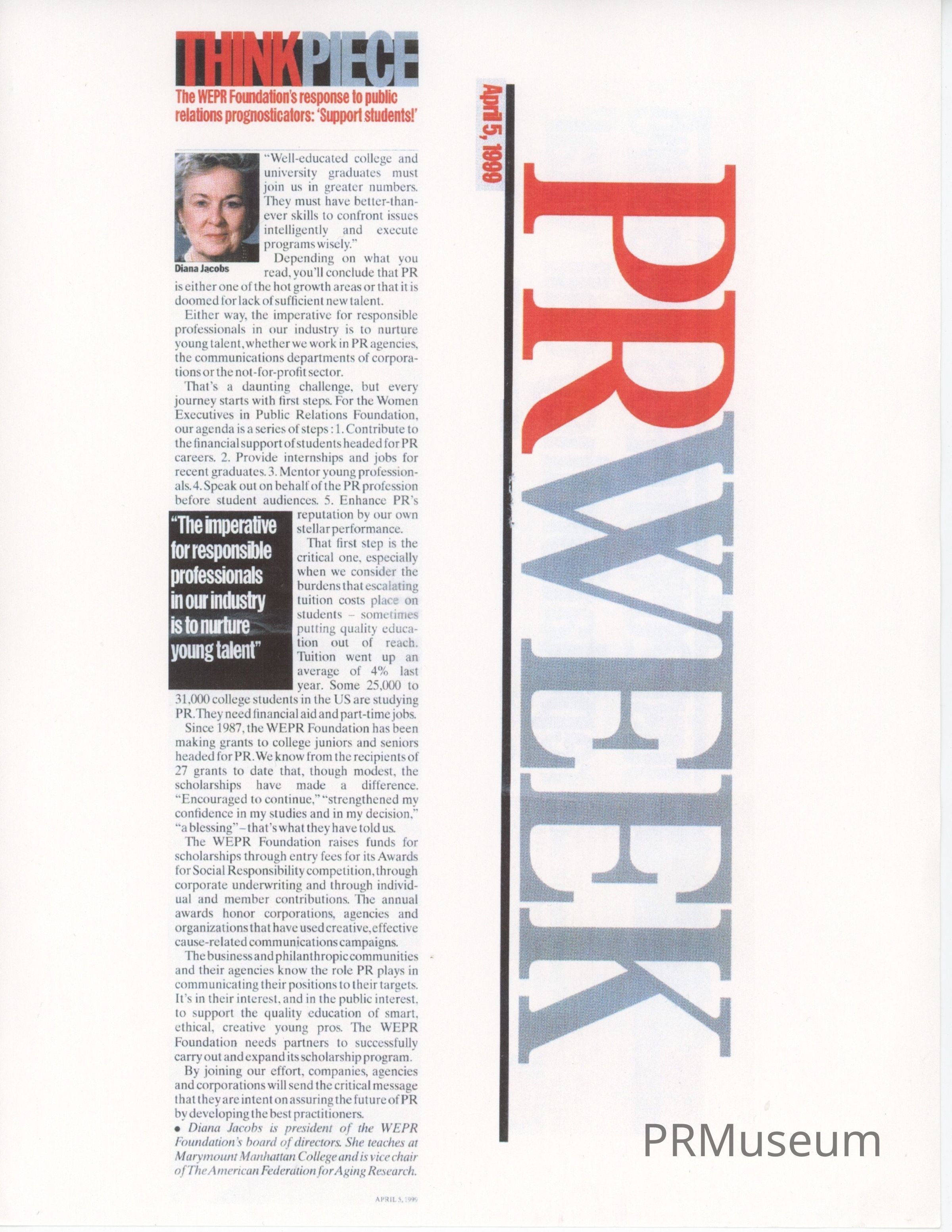 The WEPR Foundation's response to public relations prognosticators: "Support students!'Acquisition