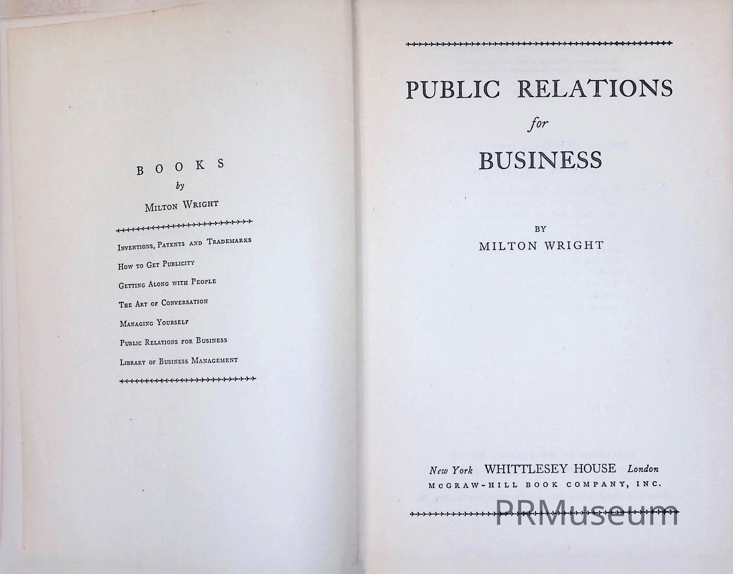In "Public Relations for Business", Wright highlights that if a businessman ought to continue his career, he must understand the present viewpoint of his public. He also considers that business leaders should adopt policies and practices that will enable them to serve the public "more effectively, more harmoniously and more profitably."Category