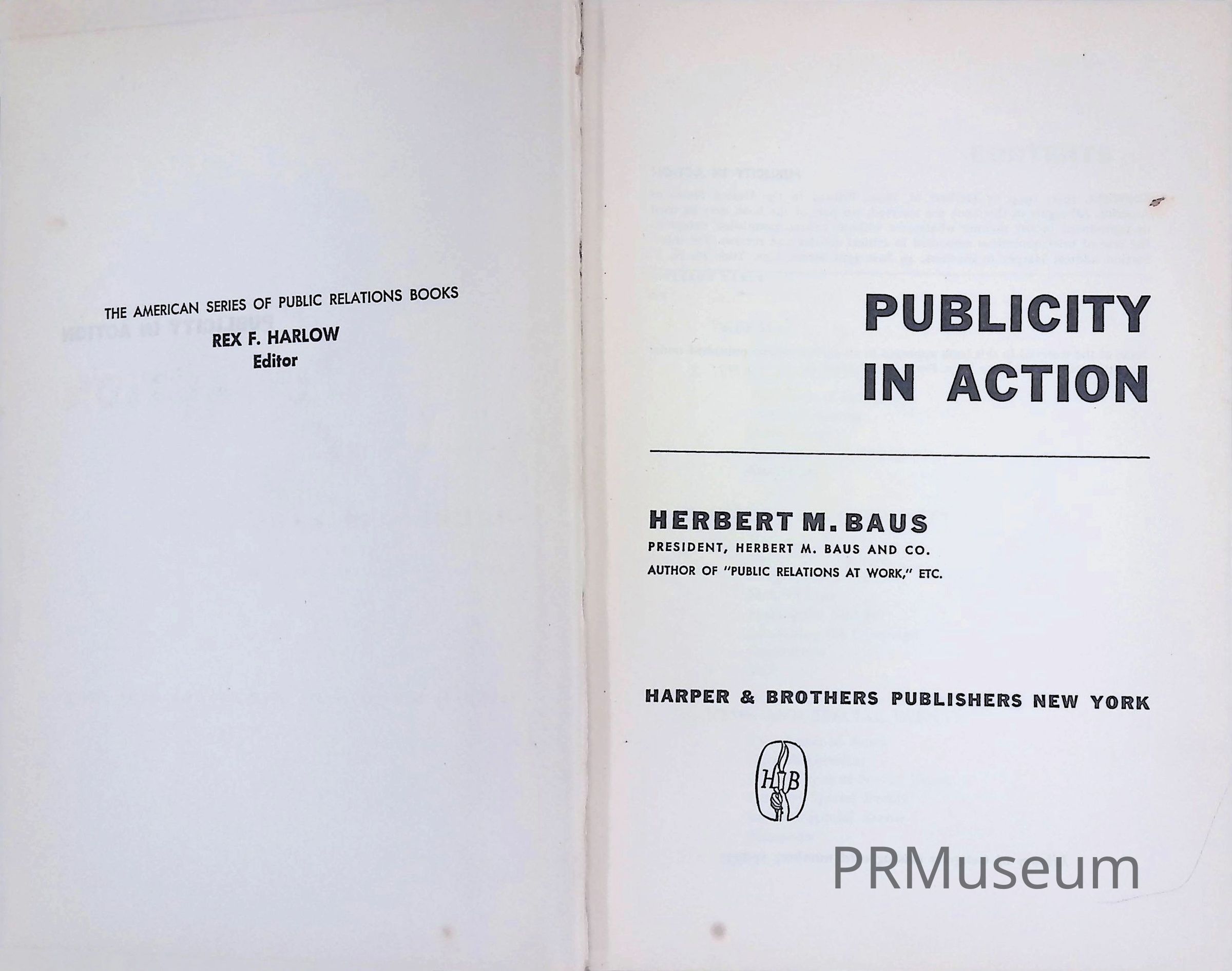 Herbert Baus was a public relations executive and author. In this book, Baus provides tools and techniques to deliver a message to selected publics at the time of publication. Baus believes that writing a book about public relations and publicity helps competition and that competition should be welcomed, not feared. Baus stated that publicity had become a vital part of a complex modern world and one of the problems in society is telling our story in a world with a population that doubles every few generations.Book Details