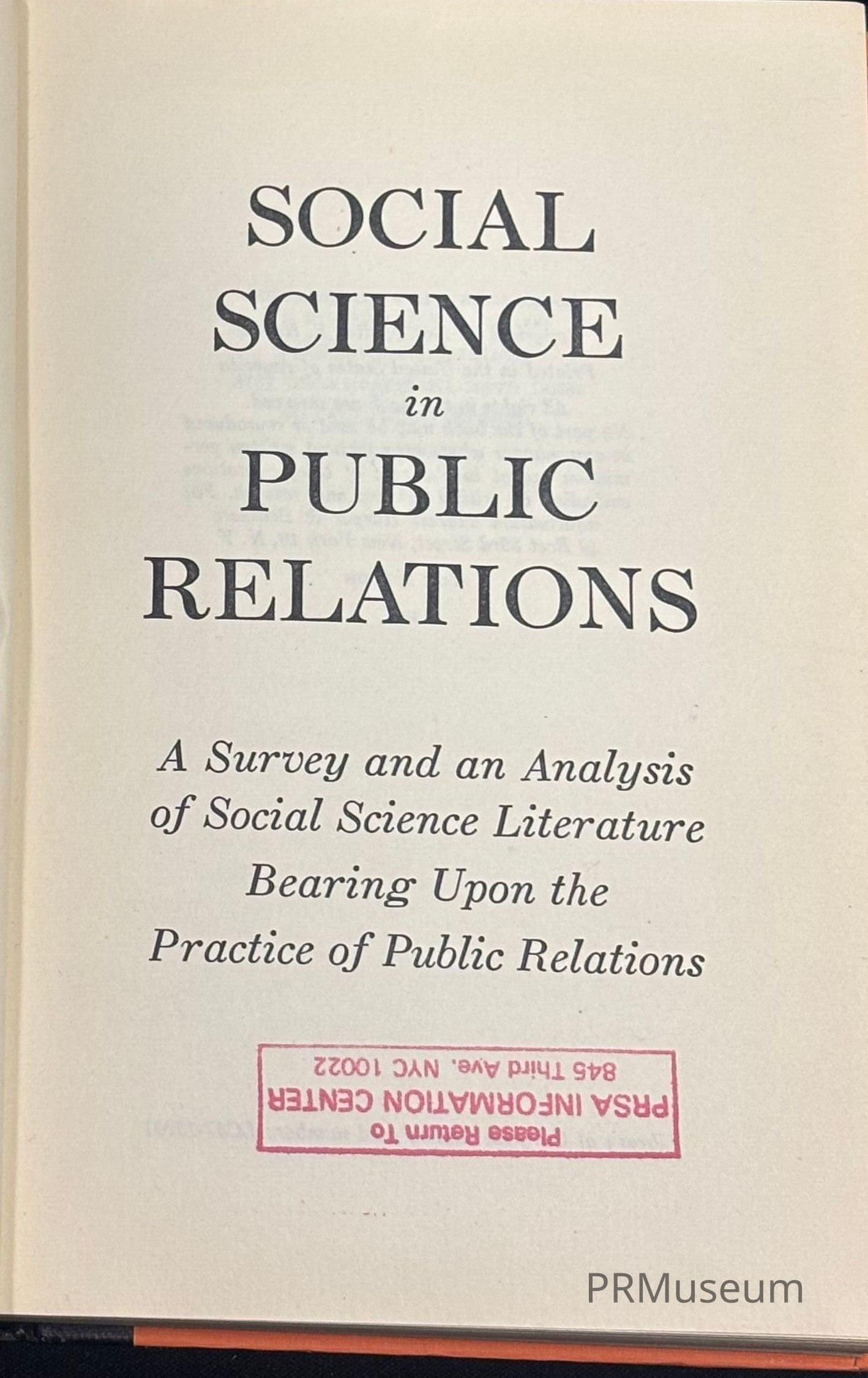 Rex F. Harlow was a prolific author, editor, and educator who significantly shaped PR theory and practice. "Social Science in Public Relations" is intended as a practical working tool, a classroom text, or a library reference volume. Harlow stated the book is "purposely short" so that the reader is protected against a mass of technical material in arriving at important facts and implications bearing upon public relations.Acquisition