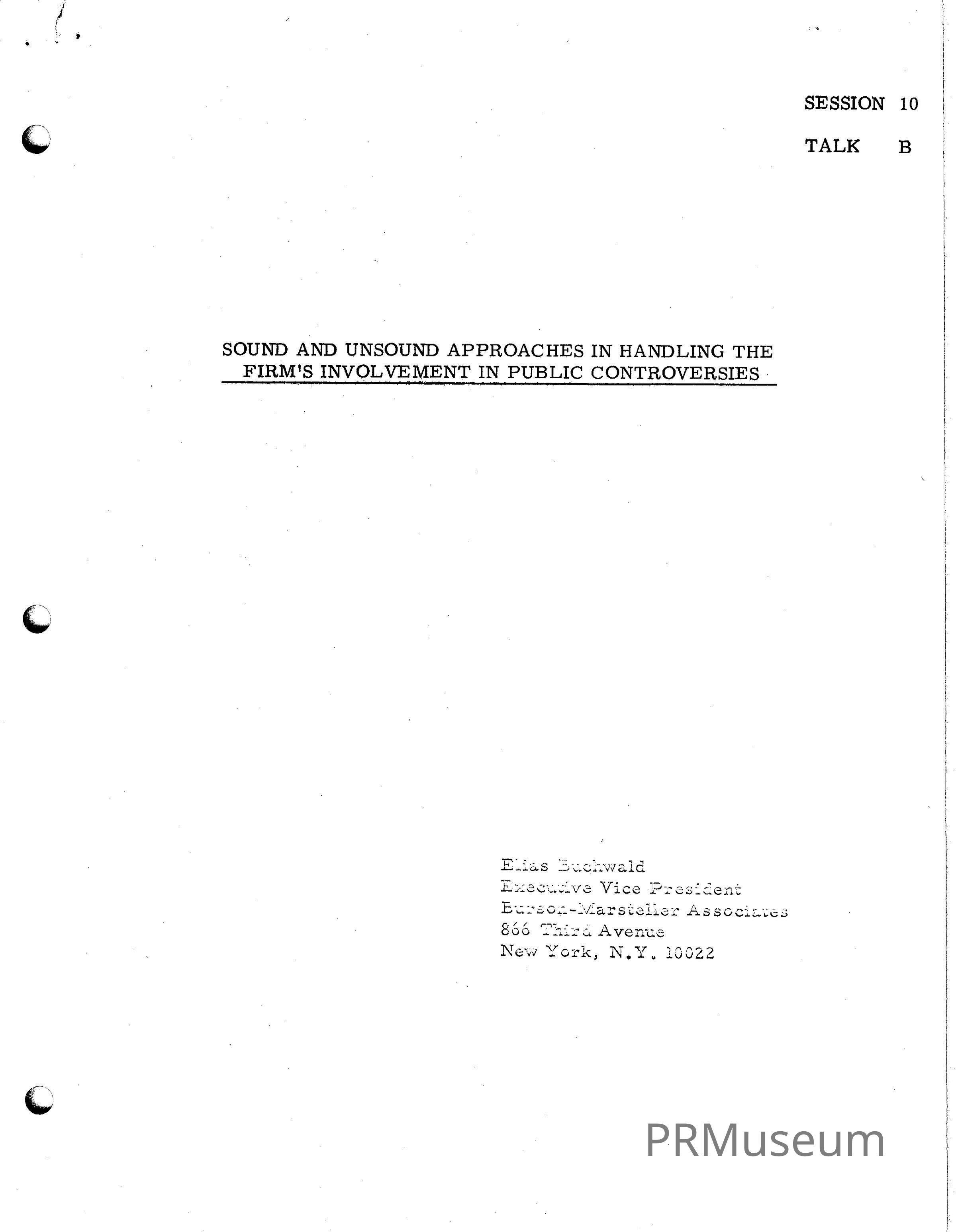 Sound and Unsound Approaches in Handling the Firm's (Burson Marsteller) Involvement in Public ControversiesCollection