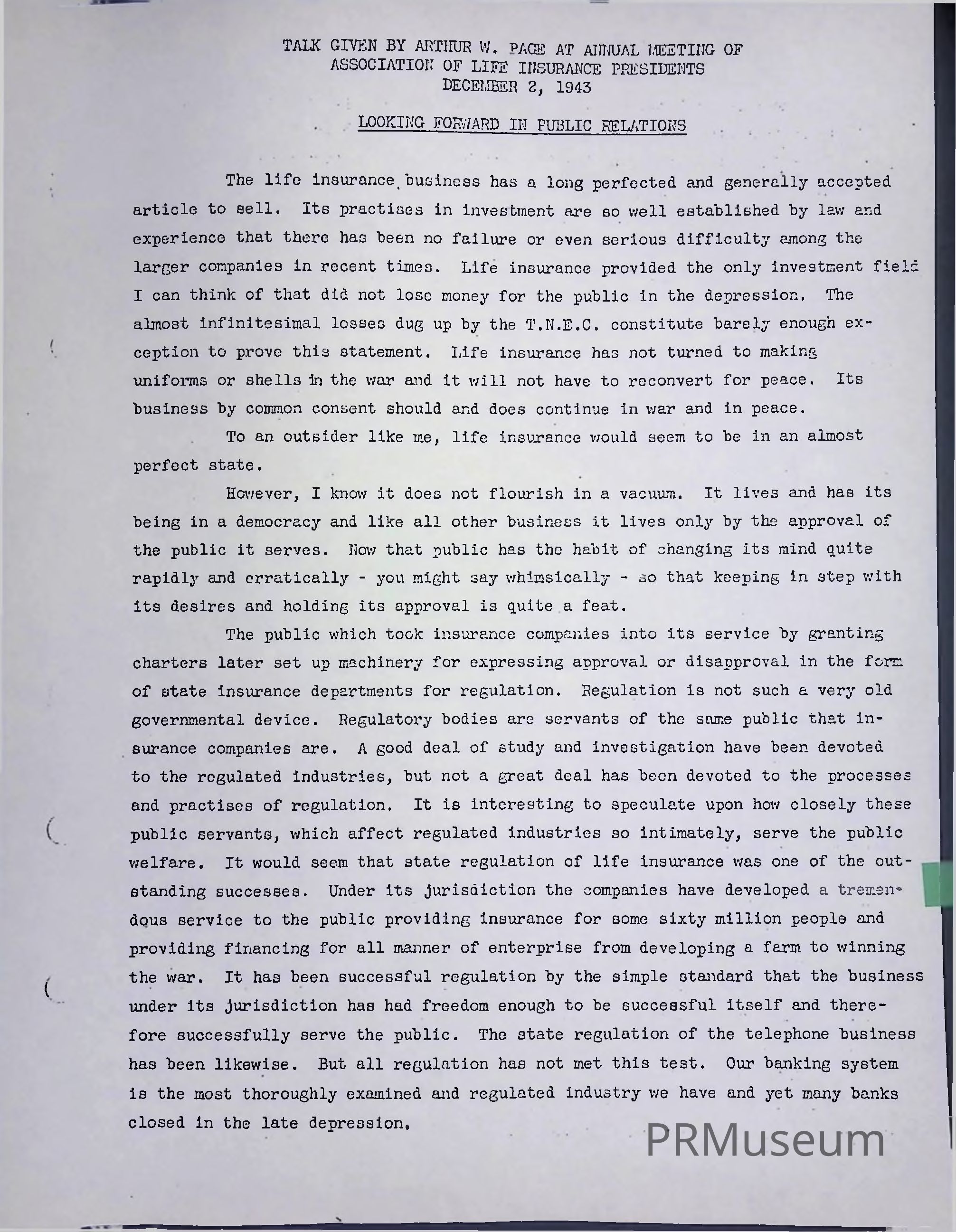 Talk Given by Arthur W. Page at Annual Meeting of Associations of Life insurance PresidentsSecondary Title