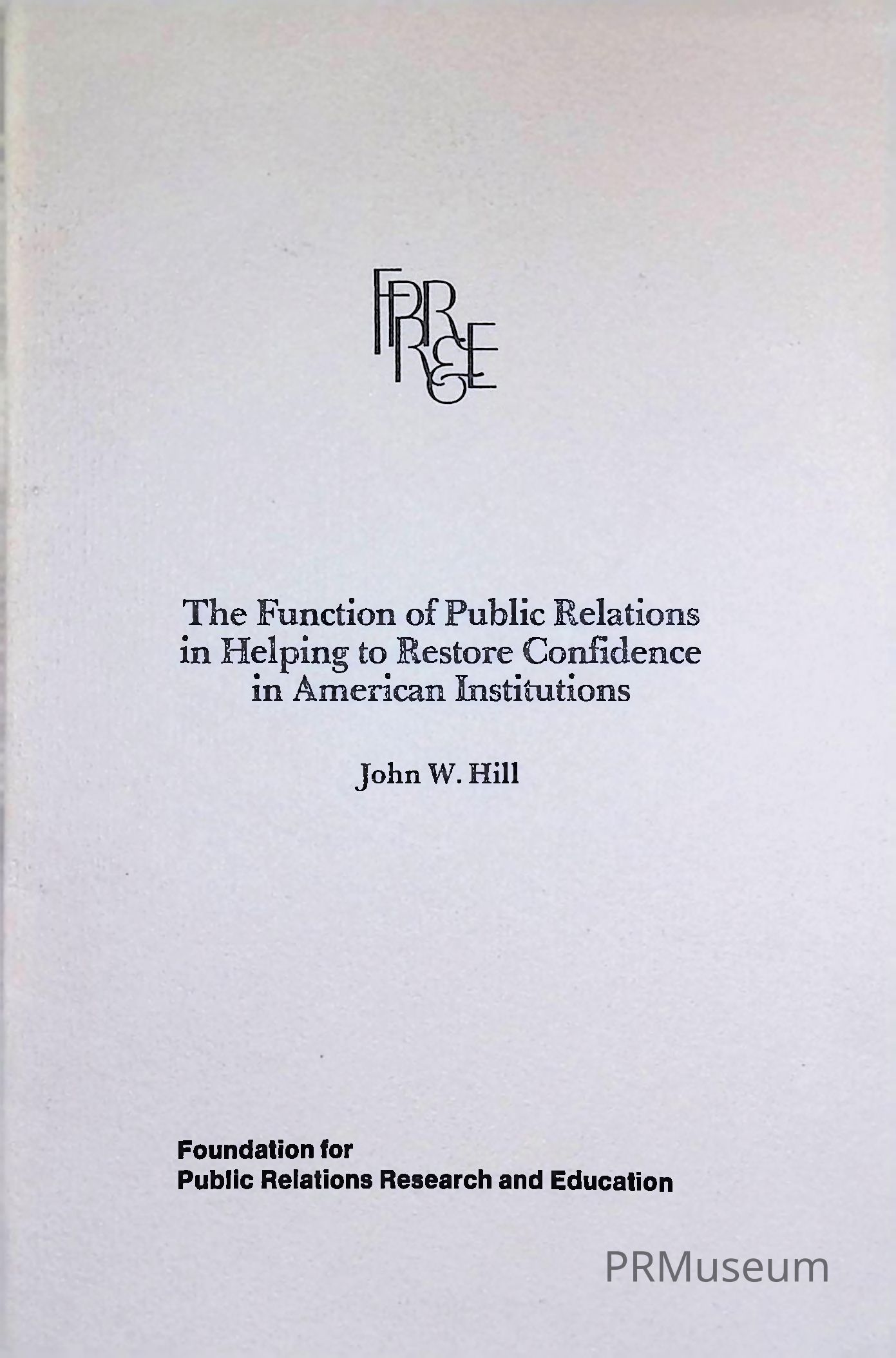 The Function of Public Relations in Helping to Restore Confidence in American InstitutionsDescription
