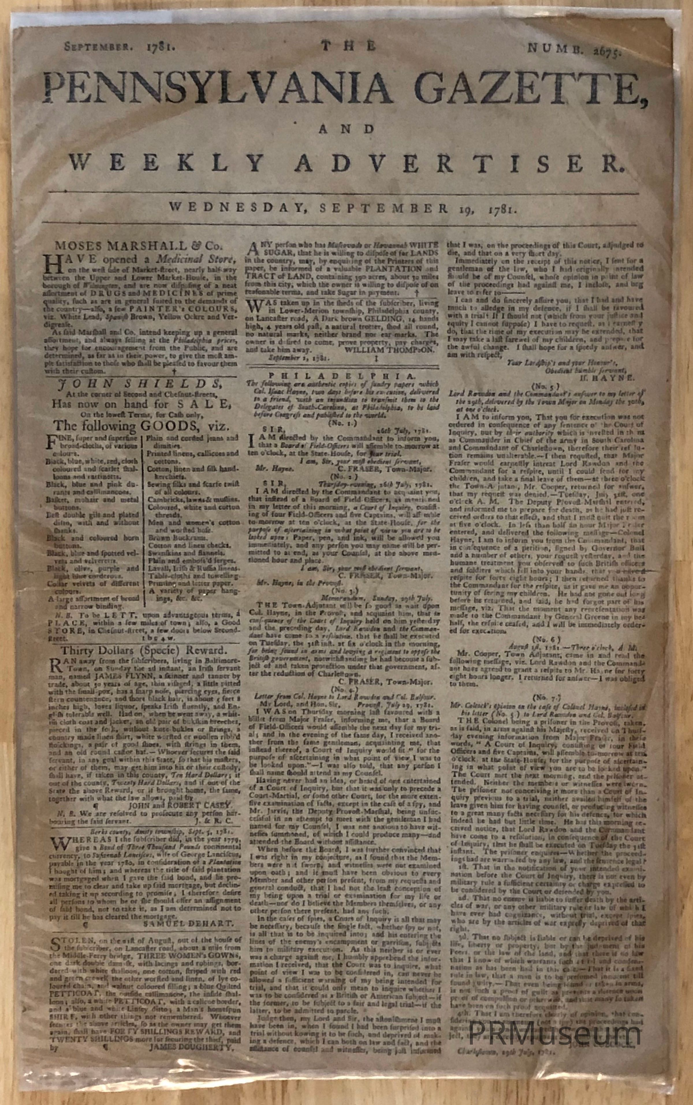 The Pennsylvania GazetteEntry/Object ID
