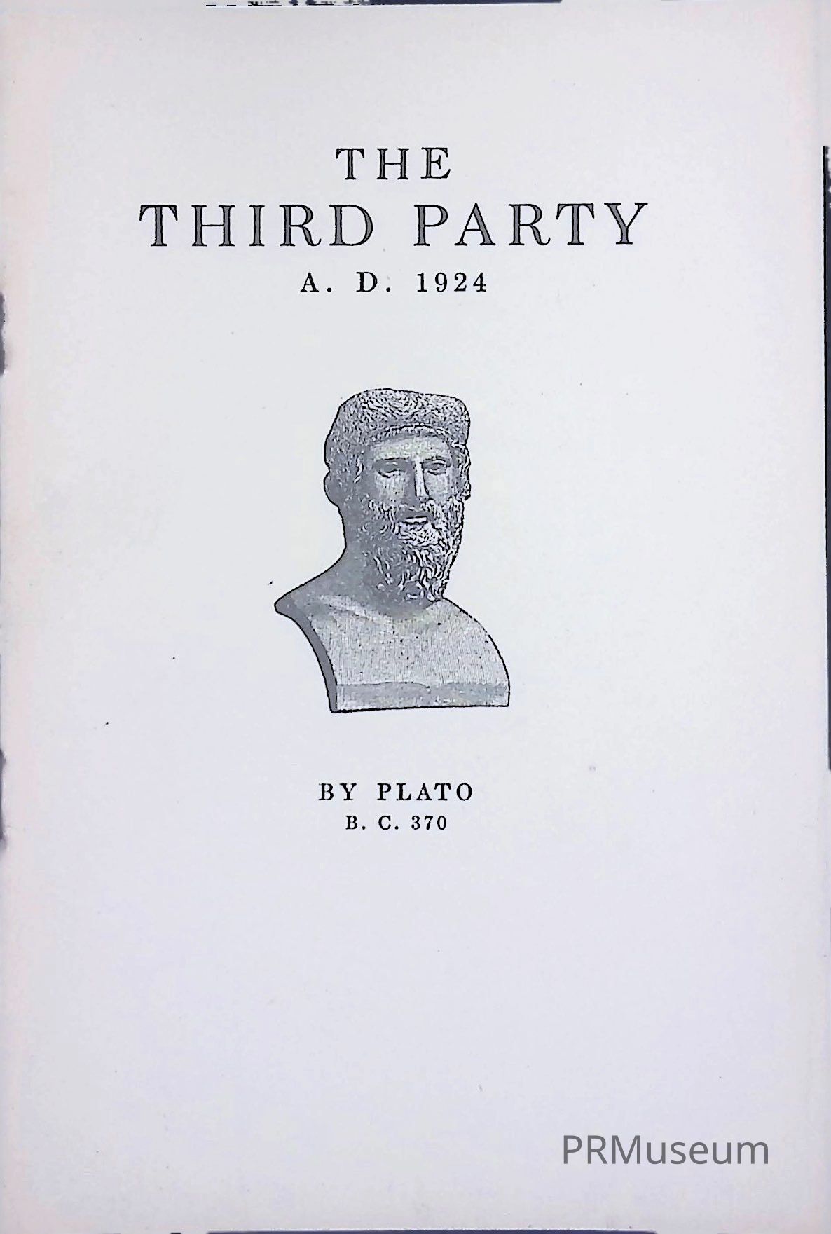 Ivy Lee is hailed as a founder of modern public relations, most notable for working closely with the Rockefellers and the first major railroads in the United States. In the beginning of the pamphlet, Lee wrote a brief excerpt on how "The Third Party" by Plato can be correlated with some phases of current American politics at the time of publication. Lee expressed "For more than two thousand years thoughtful observers of government and politics have studied Plato's "Republic" as a source of inspiration and wisdom".Acquisition