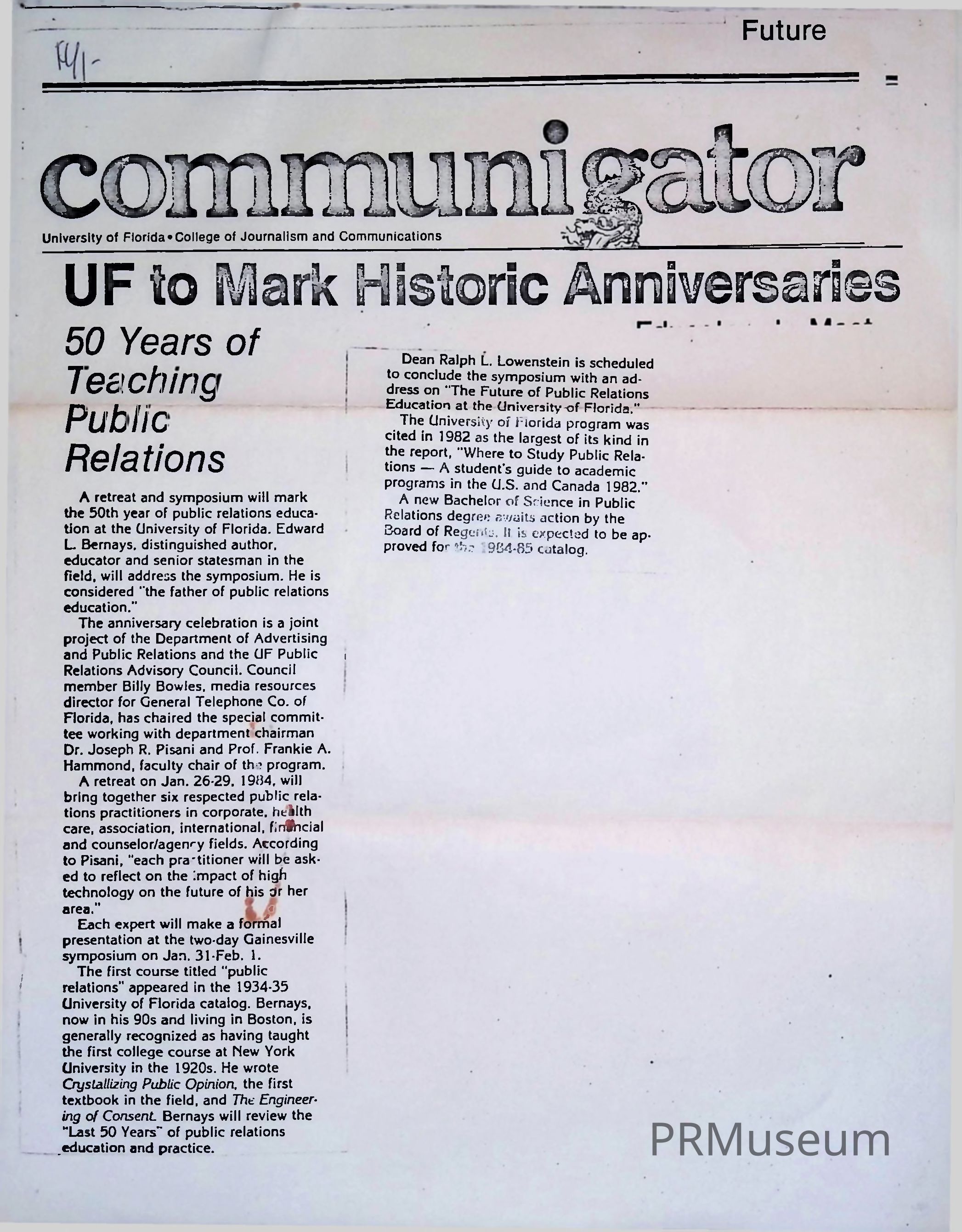UF to Mark Historic Anniversaries 50 Years Teaching PRAcquisition