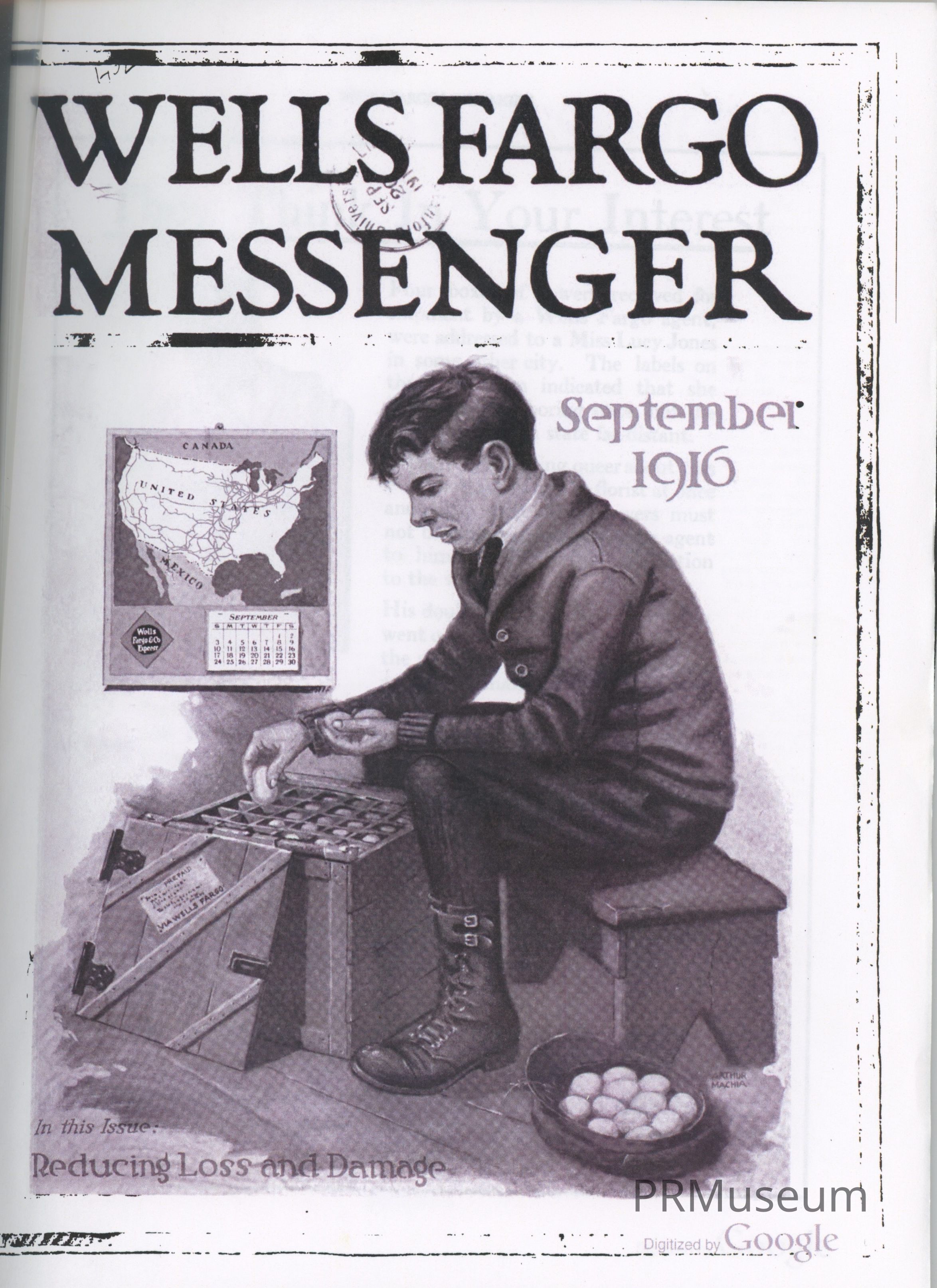 Wells Fargo Messenger September 1916 issue including "Reducing Loss and Damage".Context