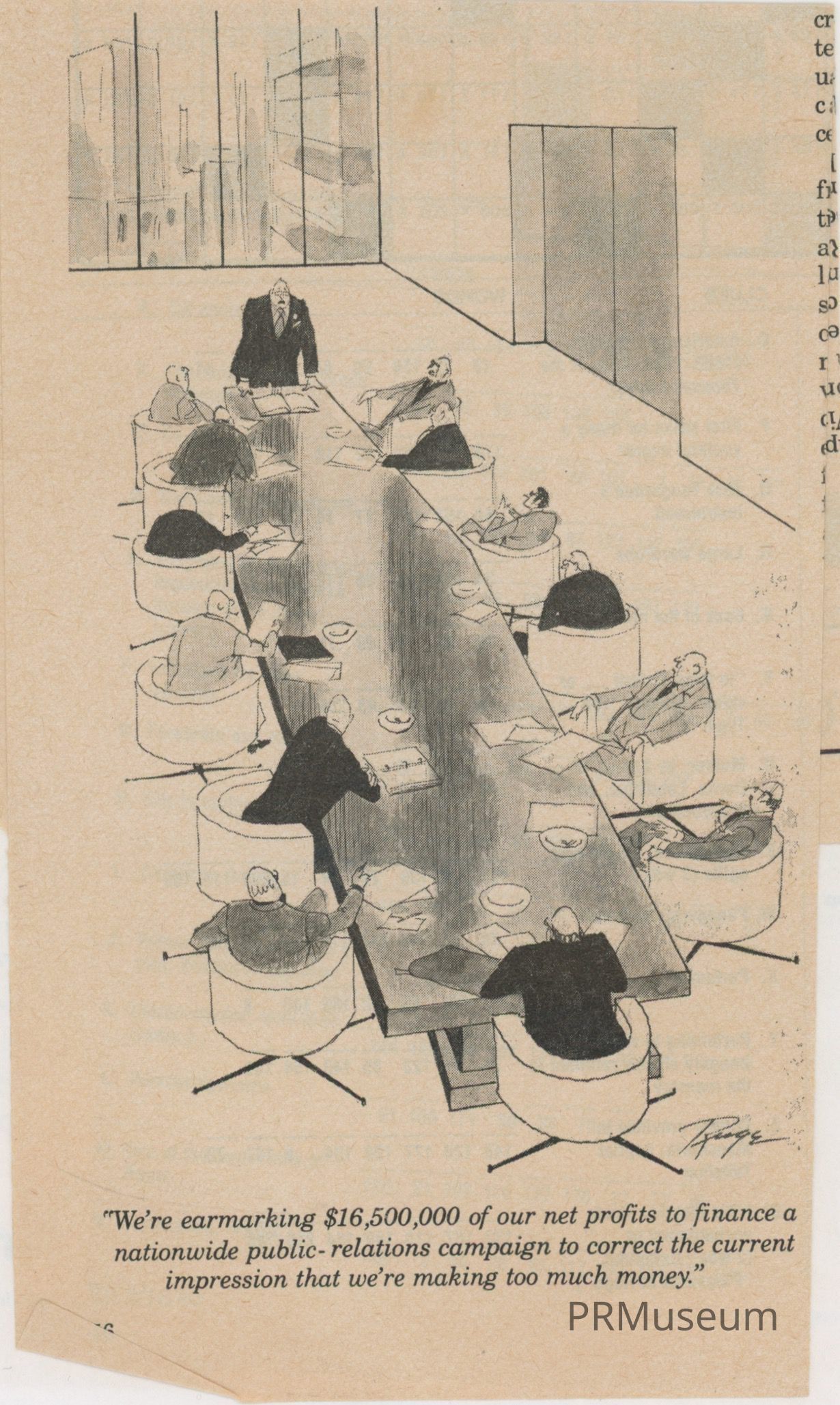 "We're earmarking $16,500,000 of our net profits to finance a nationwide public-relations campaign to correct the current impression that we are making too much money"Category