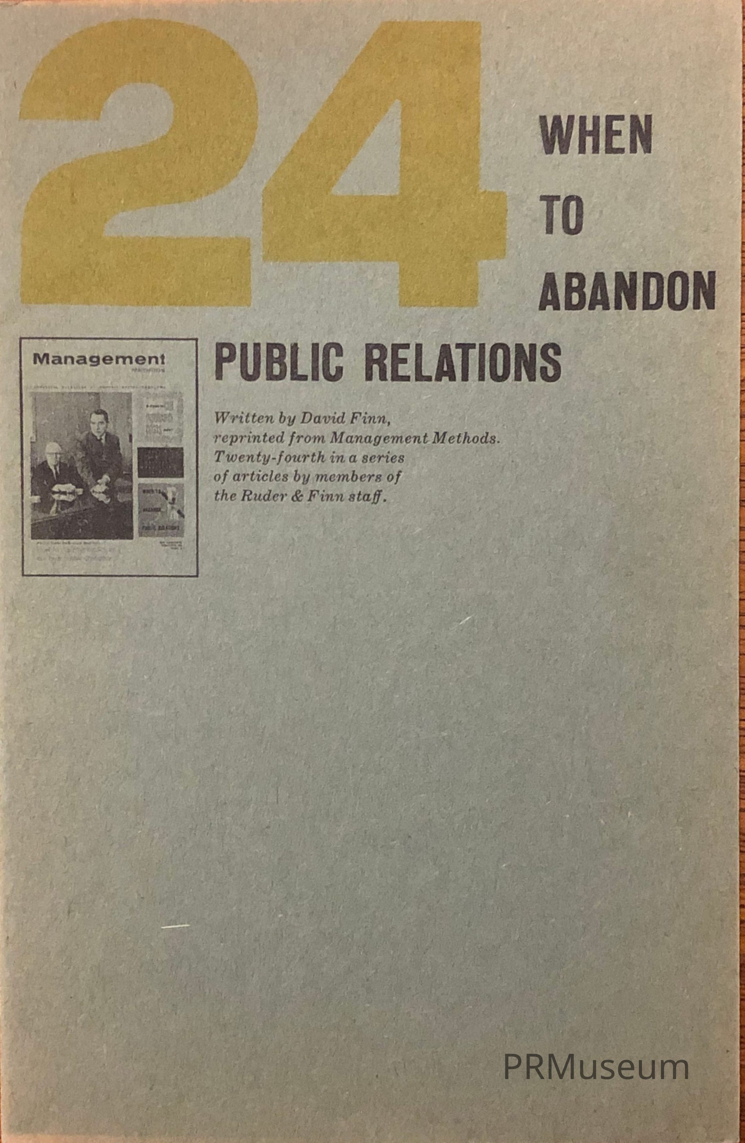 No. 24 of 24 articles on public relations by members of Ruder & Finn staffPublisher